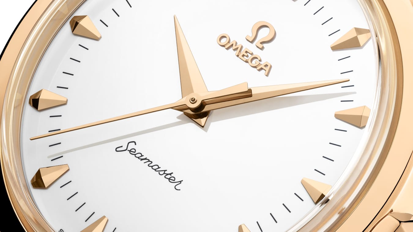 The Seamaster 37 mm Milano Cortina 2026 carries forward OMEGA's distinguished Olympic legacy. The symmetrical case, crafted in 18K Moonshine™ Gold, combines classical proportions with modern refinement through its polished finish and hexagonal crown.