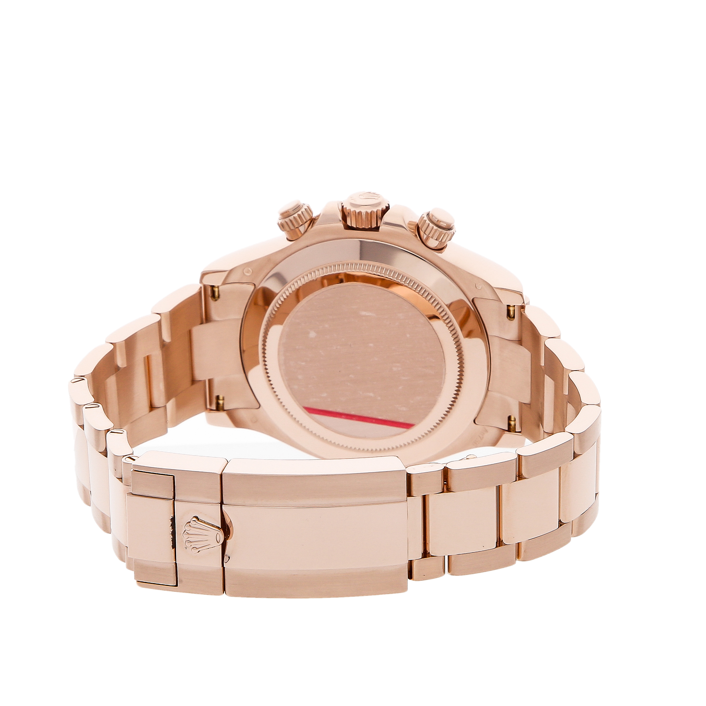 Pre-Owned Rolex Daytona Cosmograph (116505) self - winding automatic watch, features a 40mm 18k Everose gold case surrounding a pink dial on an 18k Everose gold Oyster bracelet with folding buckle. Functions include hours, minutes, small seconds, chronograph and tachymeter.This watch comes complete with box and papers. Scattered Serial.Majority of time remaining on the factory warranty!
