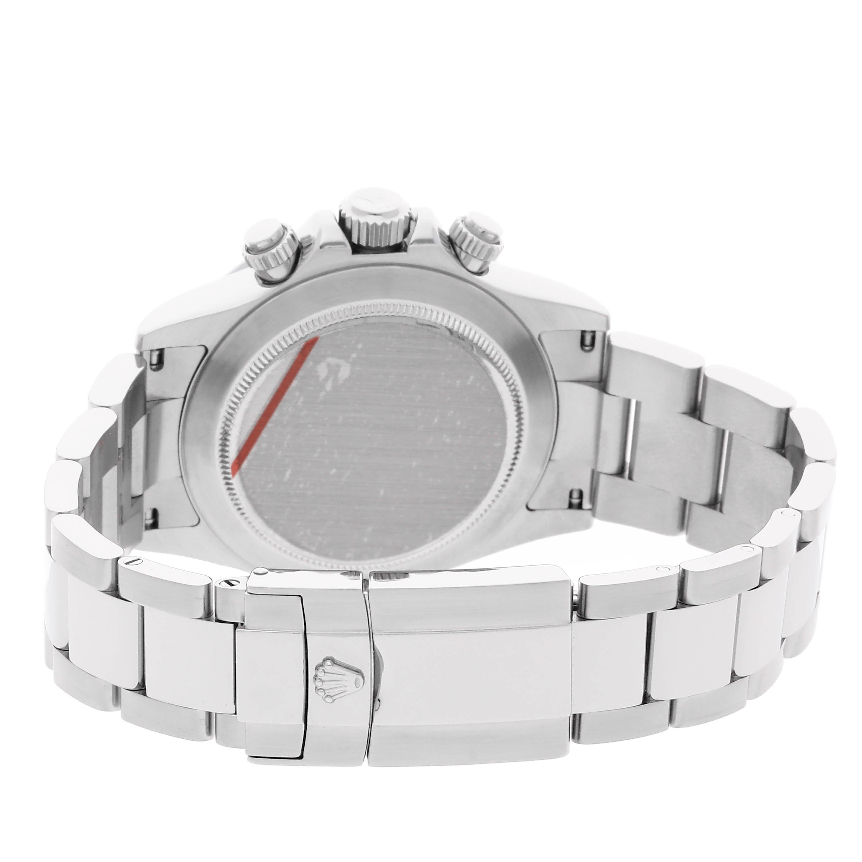 Pre-Owned Rolex Daytona Cosmograph (116520) self-winding automatic watch, features a 40mm stainless steel case surrounding a black dial on a stainless steel Oyster bracelet with folding buckle. Functions include hours, minutes, small seconds, chronograph and tachymeter.This watch does not come with box or papers. D Serial.We back this watch with a 2-Year WatchBox warranty!