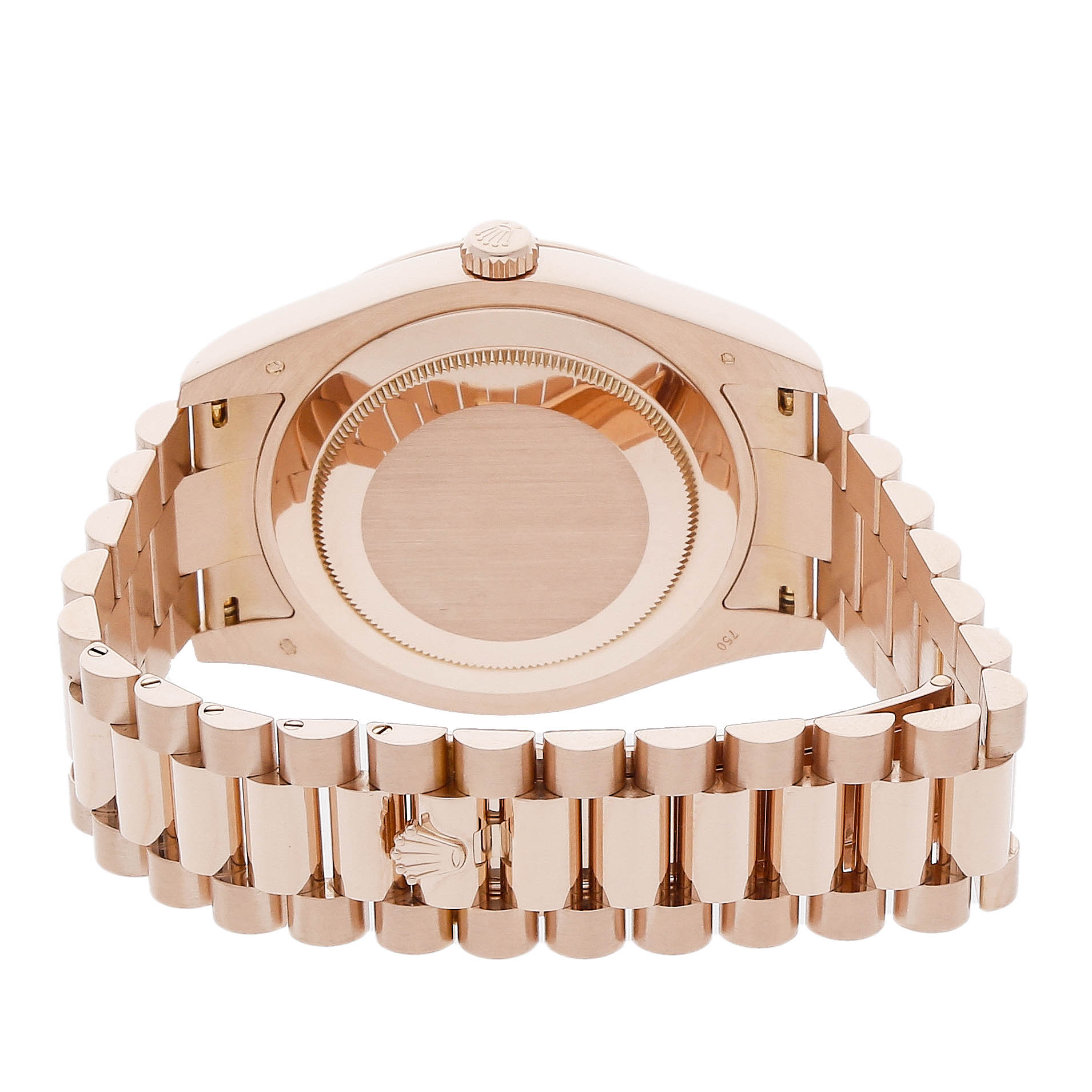 Pre-Owned Rolex Day-Date II (218235) self - winding automatic watch, features a 41mm 18k rose gold case surrounding an ivory dial on an 18k Everose gold President bracelet with folding buckle. Functions include hours, minutes, seconds, day and date. Scattered Serial.This watch comes with papers.We back this watch with a 2-Year WatchBox warranty!