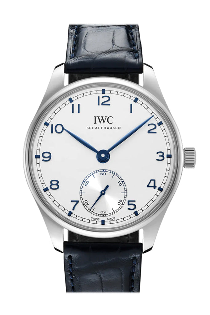 IWC Portuguese Watch IW358304 tainless steel case, Automatic, self-winding, Diameter 40.4 mm, Blue alligator leather strap, Strap width 20.0 mm. Made in Switzerland