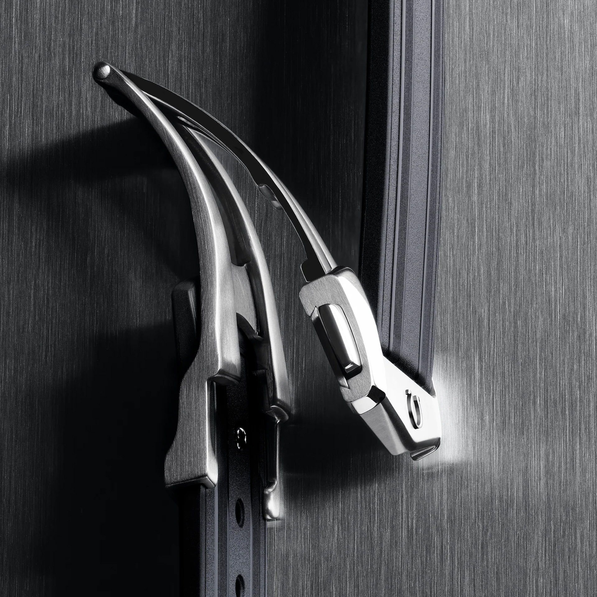 PVD stainless steel is used to create the brushed dial as well as the polished and skeletonized hands and indexes, which are filled with white Super-LumiNova. Other markings, including the OMEGA logo, are transferred in black.