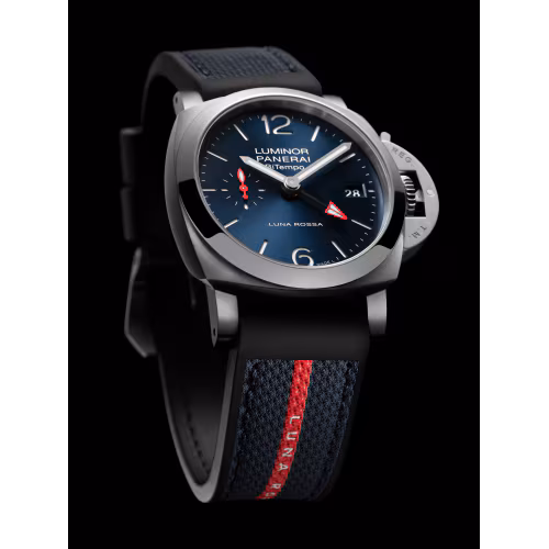 Strap: Bi-material rubber/textile Luna Rossa dark blue, T/T stitching, STD, 22/20, BA, PAM Click Release System™