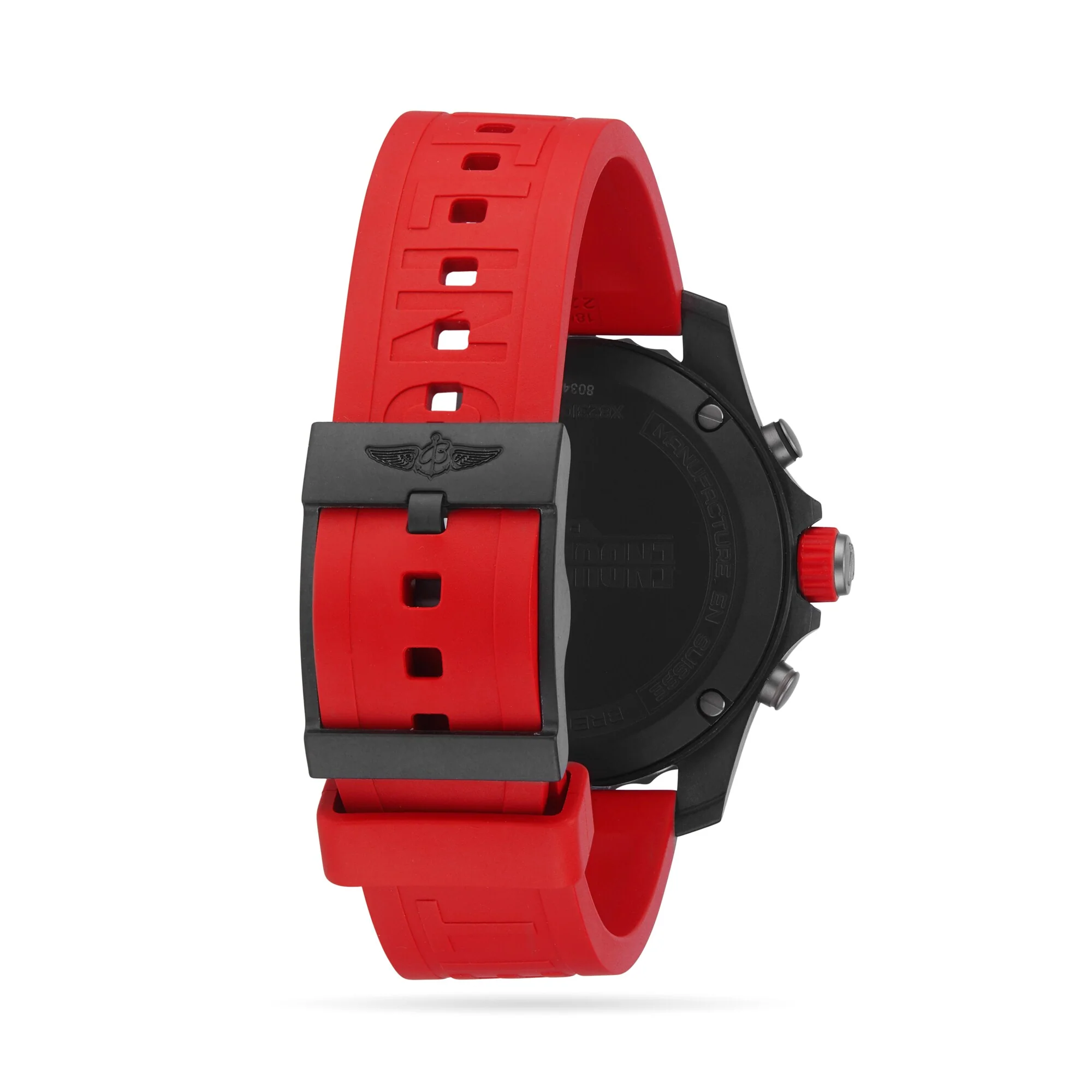 The ultimate athleisure watch An athletic watch blending high precision, innovation, and vibrant design 44mm Breitlight® case paired with a vibrant red rubber strap Powered by the Breitling 82 calibre movement, a COSC-certified SuperQuartz™ chronograph Water resistant to 10 bar (100 metres) THE ULTIMATE ATHLEISURE WATCH Expertly designed to be both a lightweight watch for athletes and a casual, everyday sports chronograph, the Endurance Pro is the ultimate athleisure watch. Offering expert precision, vibrant and colourful designs, the latest innovative technology and outstanding endurance, this performance-focused collection is ideal for those with a professional mindset and an active lifestyle. The case is crafted from exclusive, 100% Swiss-made Breitlight® - an ultra-light, robust material that is 3.3 times lighter than titanium and 5.8 times lighter than stainless steel, as well as being non-magnetic, thermally stable, and hypoallergenic. ALWAYS READY FOR ACTION This robust, performance focused model boasts a 44mm Breitlight® case, paired with a bi-directional, compass scale bezel and a vibrant red rubber strap. Adding to the sporty aesthetic, the bold black dial plays host to 3 chronograph sub-dials, a date display, a tachymeter scale, silver-tone hands and striking red details. This timepiece is powered by the Breitling 82 calibre movement, a COSC-certified SuperQuartz™ chronograph for expert precision.