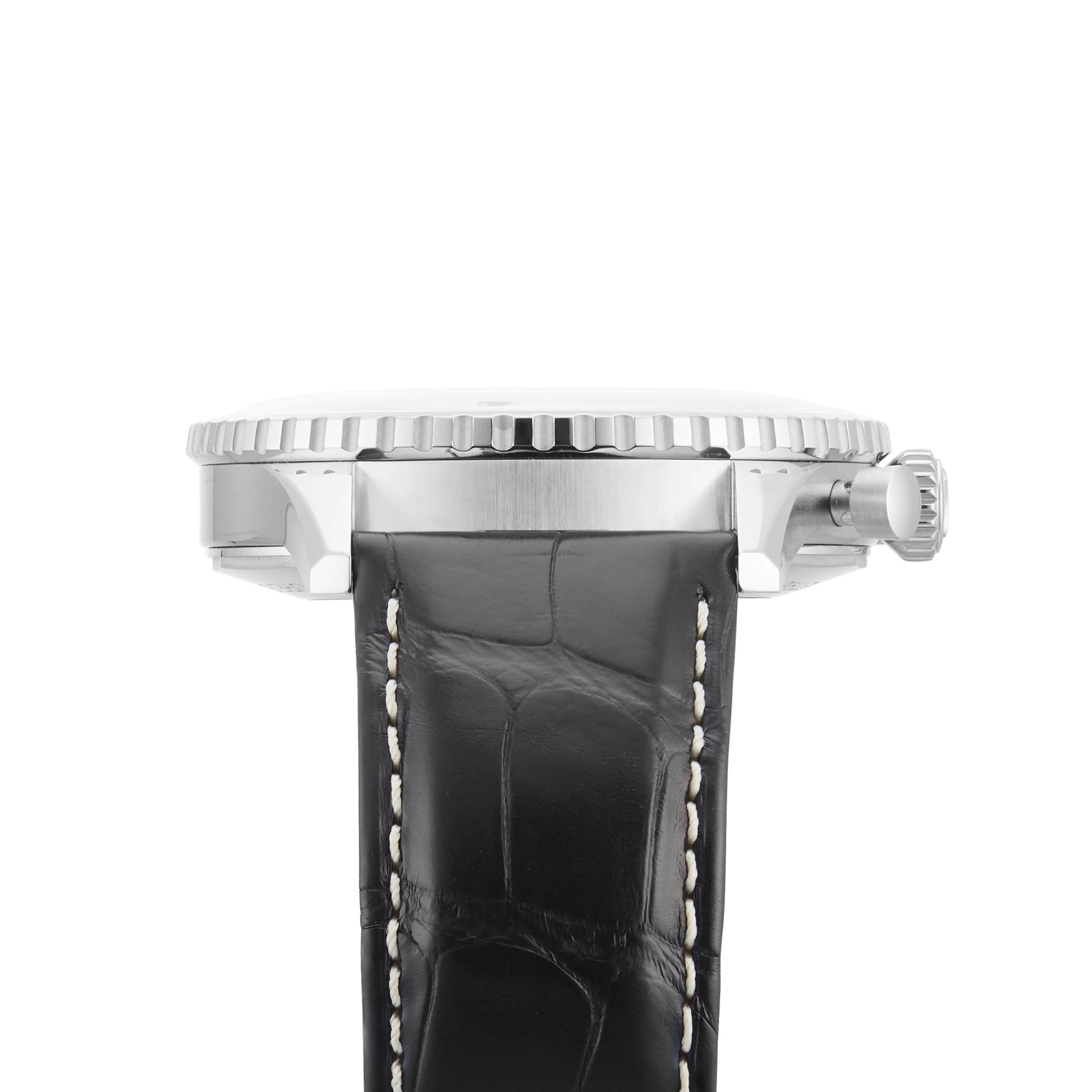 A new take on the iconic Navitimer timepiece Embraces classic design with modern refinements Green dial with baton indexes and chronograph counters 46mm stainless steel case paired with a black leather strap Powered by the Breitling 01 calibre movement A NEW TAKE ON A CLASSIC CHRONOGRAPH First introduced in 1952, the navigation timer, or the Navitimer, was designed to allow pilots to perform all necessary flight calculations in the sky. Two years later, it was named the official timepiece of the Aircraft Owners and Pilots Association – the largest pilot’s club in the world. Staying true to the iconic collection, this new Navitimer B01 Chronograph is enhanced by modern refinements, namely a sleeker profile, as well as brushed and polished metal elements for a luxe yet somehow understated finished. A nostalgic nod to the original design, the model features the AOPA wings at the original position of 12 o’clock. EXTREME ACCURACY A chronometer certified by COSC, this timepiece boasts a stainless steel case presented on a black, alligator leather strap with contrasting white stitching. The vibrant green dial features silver baton indexes and hands, alongside three black chronograph counters. For extreme accuracy and reliability, this extraordinary timepiece is powered by the Breitling 01 calibre movement.