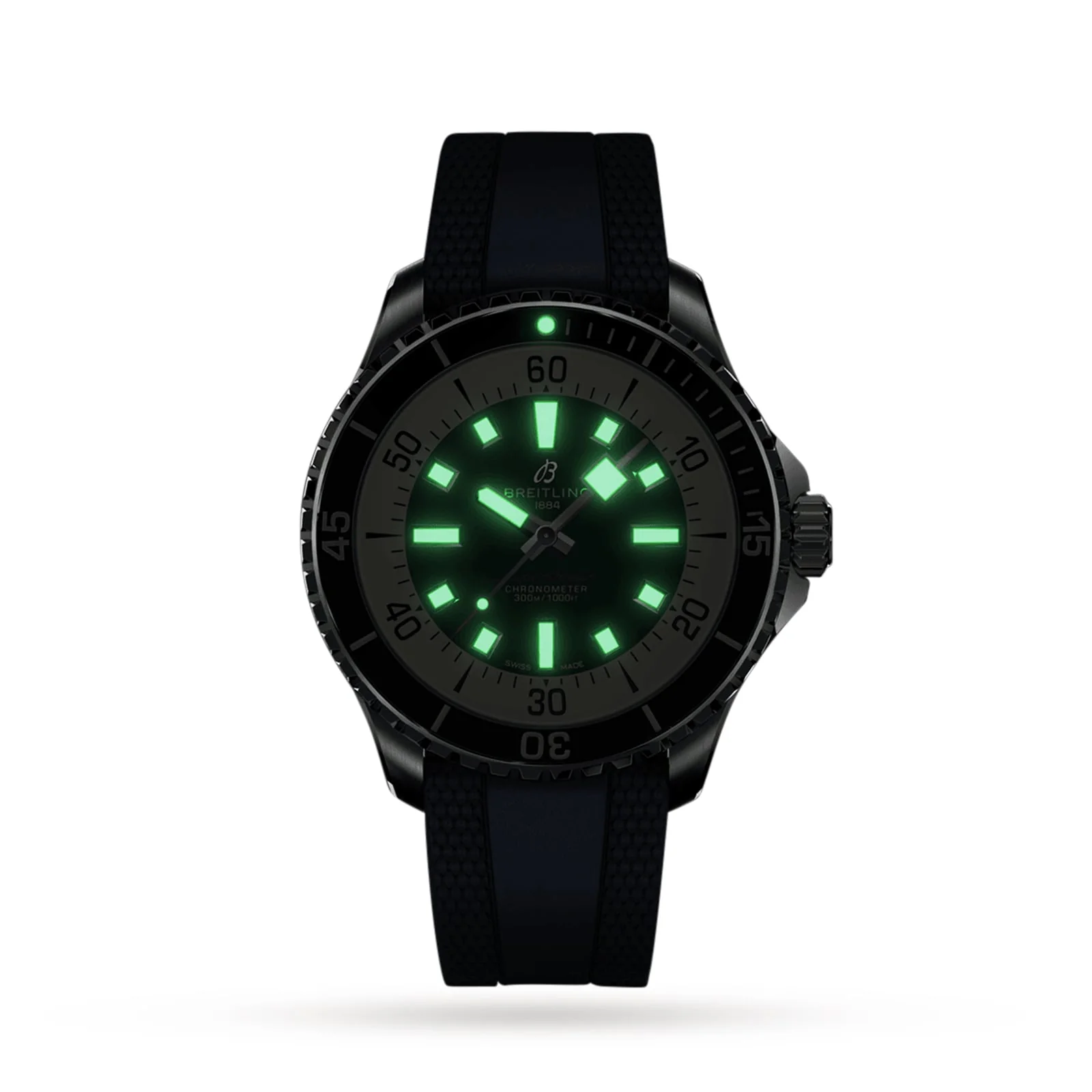 Ready for any water-based challenge – swimming, diving, or surfing Combines serious performance with classic style 44mm stainless steel case with a deep blue rubber strap Powered by automatic Breitling 17 calibre movement with a 38-hour power reserve Water resistant to 100 bar (1000 metres) FOR ADVENTURES CLOSER TO THE SHORE The perfect timekeeper for water-based pursuits, the Superocean collection is renowned for its outstanding performance on land and beneath the waves. Finding the perfect balance between serious performance and classic style, the Superocean Automatic 44 is robust, water resistant to 100 bar (1000 metres), and up to any challenge – deep beneath the waves or closer to the shore. THE PERFECT COMPANION This 44m Superocean model features a deep blue dial designed to provide maximum legibility. Framed by a unidirectional bezel, this timepiece offers ultimate safety during even the deepest of dives. The stainless steel case is presented on blue rubber strap and offers shock, sand, and saltwater resistance. Complete with Breitling 17 calibre movement, this watch provides power and precision.