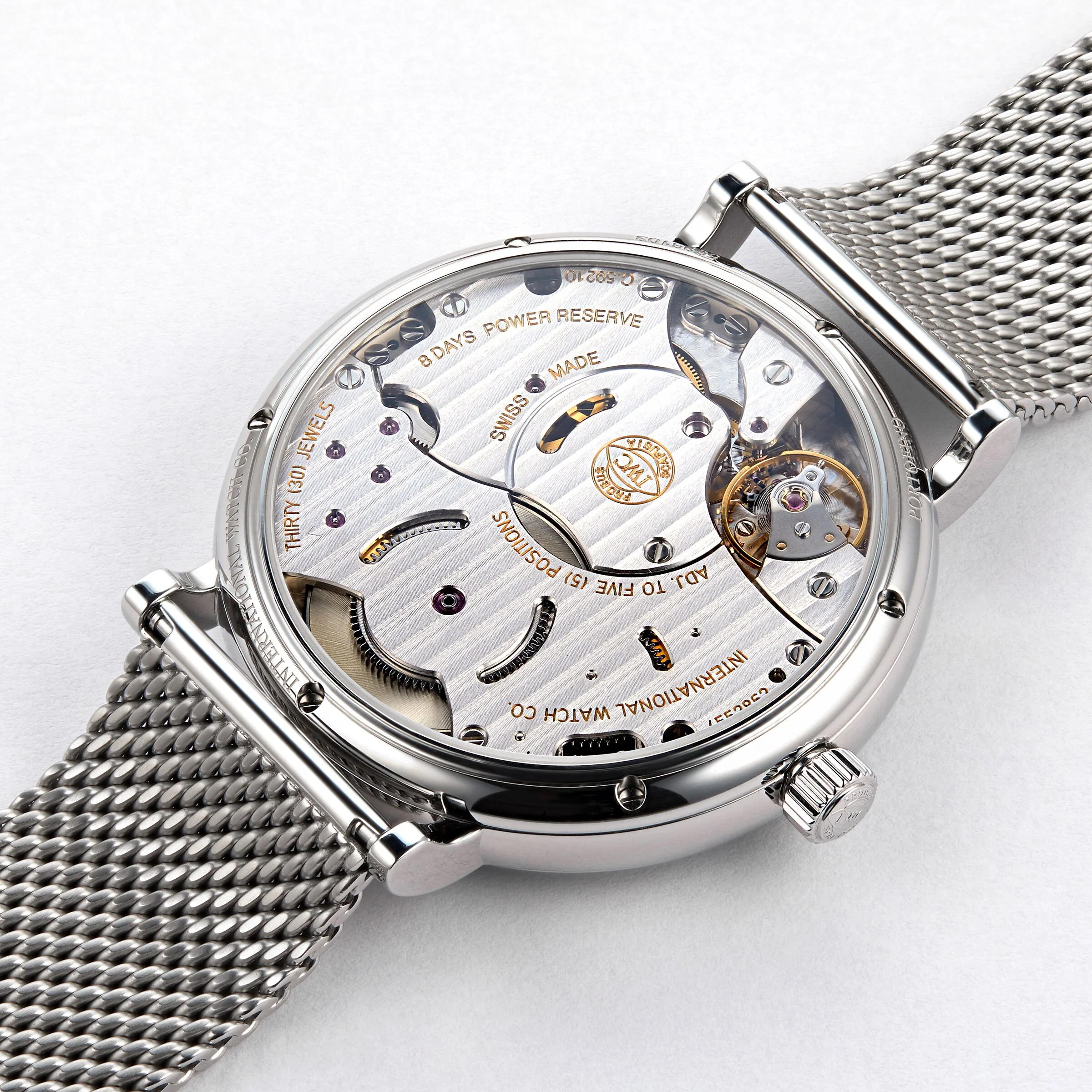 Showcasing a distinctly Mediterranean sense of style, the IWC Portofino collection draws inspiration from the classically stylish and laidback nature of the Italian coast. Driven by a IWC-manufactured, 59210 caliber manual-winding movement with an incredible 192-hour power reserve, this IWC Portofino Hand-Wound Eight Days Watch only requires winding once each week. Sitting confidently within a 45mm stainless steel case, the beautifully balanced, striking blue dial is equipped with applied indices, a Roman numeral marker at 12 o’clock, a small seconds sub-dial, a power reserve indicator and a date display at 3 o’clock. A Milanaise mesh stainless steel bracelet completes the distinctive look. Water resistant to 30 meters. Explore the full IWC collection.
