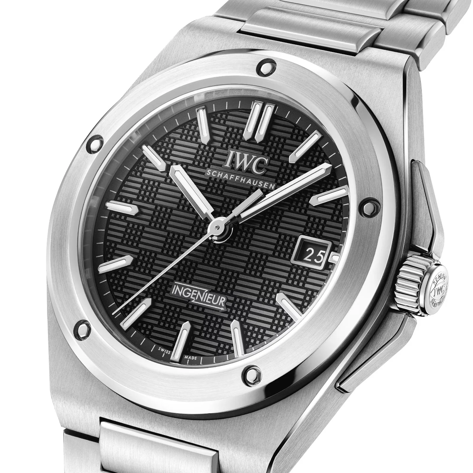 Since its debut in 1955, the Ingenieur by IWC has been synonymous with renowned watch designer Géral d Genta. In the 70s, Genta's artistic vision came to life in the form of the Ingenieur SL, Reference 1832 - a stunning stainless ste el luxury sports watch with an integrated bracelet. The Ingenieur Automatic 40 stays true to the iconic Genta design, while boasting impeccable ergonomics, finishing, and technology. This timepiece features a stainless steel case, bezel, and H-link bracelet with b utterfly folding clasp, all intricately crafted with polished and satin-finished surfaces. The case and bracelet have been meticulou sly improved for the utmost comfort, with a 40-millimeter diameter and newly engineered middle-link attachment. The screw-down bezel , with its five polygonal screws, adds to the bold aesthetic appeal.