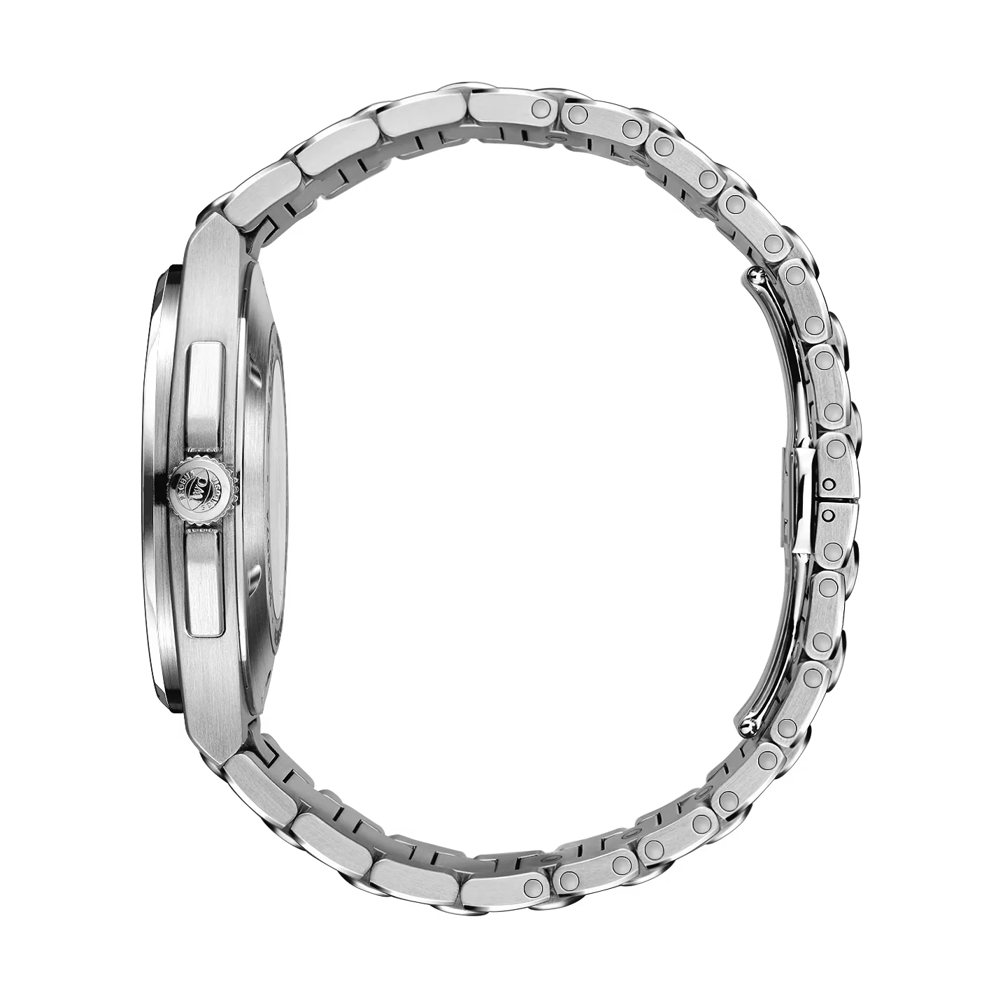 Although the Ingenieur was first launch ed in 1955 by IWC, it is the iconic designer Gérald Genta who has become most closely associated with this watch family. His vision of a stainless-steel luxury sports watch with an integrated bracelet, embodied in the Ingenieur SL, Reference 1832, captured the hearts of watch enthusiasts during the 1970s. With its bold aesthetic elements, expert craftsmanship, and advanced technology, the Ingenieur Automatic 40 pays homage to Genta's signature design. The 40-millimetre case, bezel, and integrated H-link bracelet are all meticulously finished with polished and satin-finished surfaces, ensuring a truly luxurious look and feel. The case and bracelet have been carefully optimized for ergonomic comfort, even for slimmer wrists. The silver-plated dial features the iconic "Grid" pattern, with rhodium-plated hands and appliques that glow in the dark for easy readability.