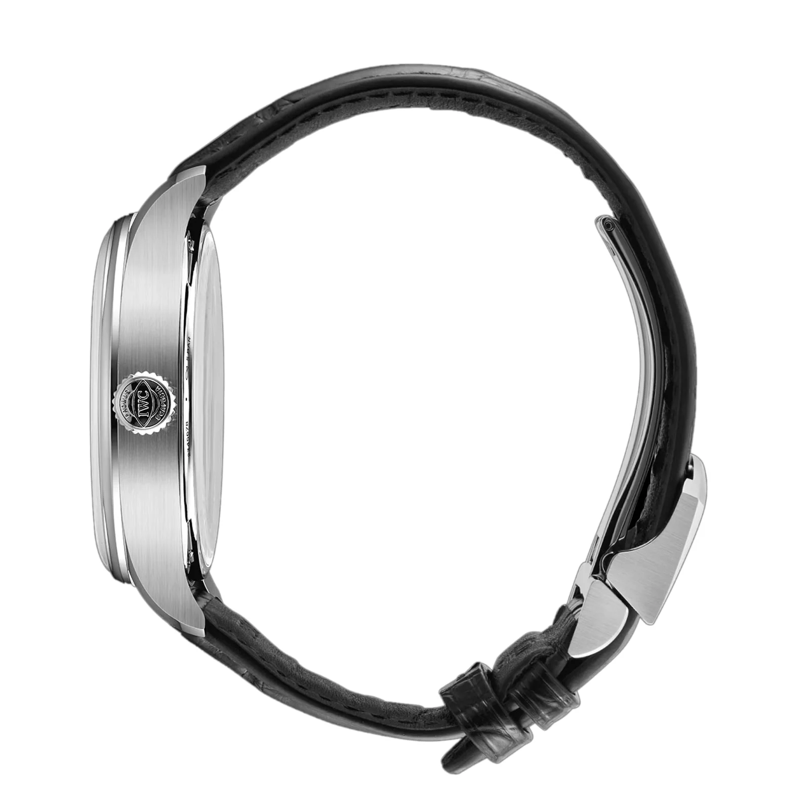 Portugieser - Reimagining an iconic design Powered by the IWC-manufactured 52011 calibre automatic movement Housed in a 42.4mm stainless steel case secured with a black alligator leather strap Glistening Dune dial inspired by the golden light of the setting sun Equipped with a 7-day power reserve A CLASSIC AESTHETIC An unequivocal icon, the Portugieser showcases an intrinsic 1930s IWC Schaffhausen design, reimagined for the modern day. Timeless luxury meets unparalleled quality for a statement timepiece that is as functional as it is comfortable. Boasting clean, bold aesthetics on an open dial, this model benefits from a compact 42.4mm case, housing a powerful IWC-manufactured 52011 calibre movement for expert timekeeping. INSPIRED BY THE GOLDEN LIGHT OF THE SETTING SUN A 42.4mm stainless steel case is encircled by a thin stainless steel bezel, giving the illusion of a much larger watch. Inspired by the unique atmosphere of the early evening and the golden light of the setting sun, the charming dune dial features a power reserve indicator, small hacking seconds dial, and date display. The piece fastens with a black alligator leather strap, while water resistance to 5 bar (50 metres) and a 7-day power reserve enhance performance.