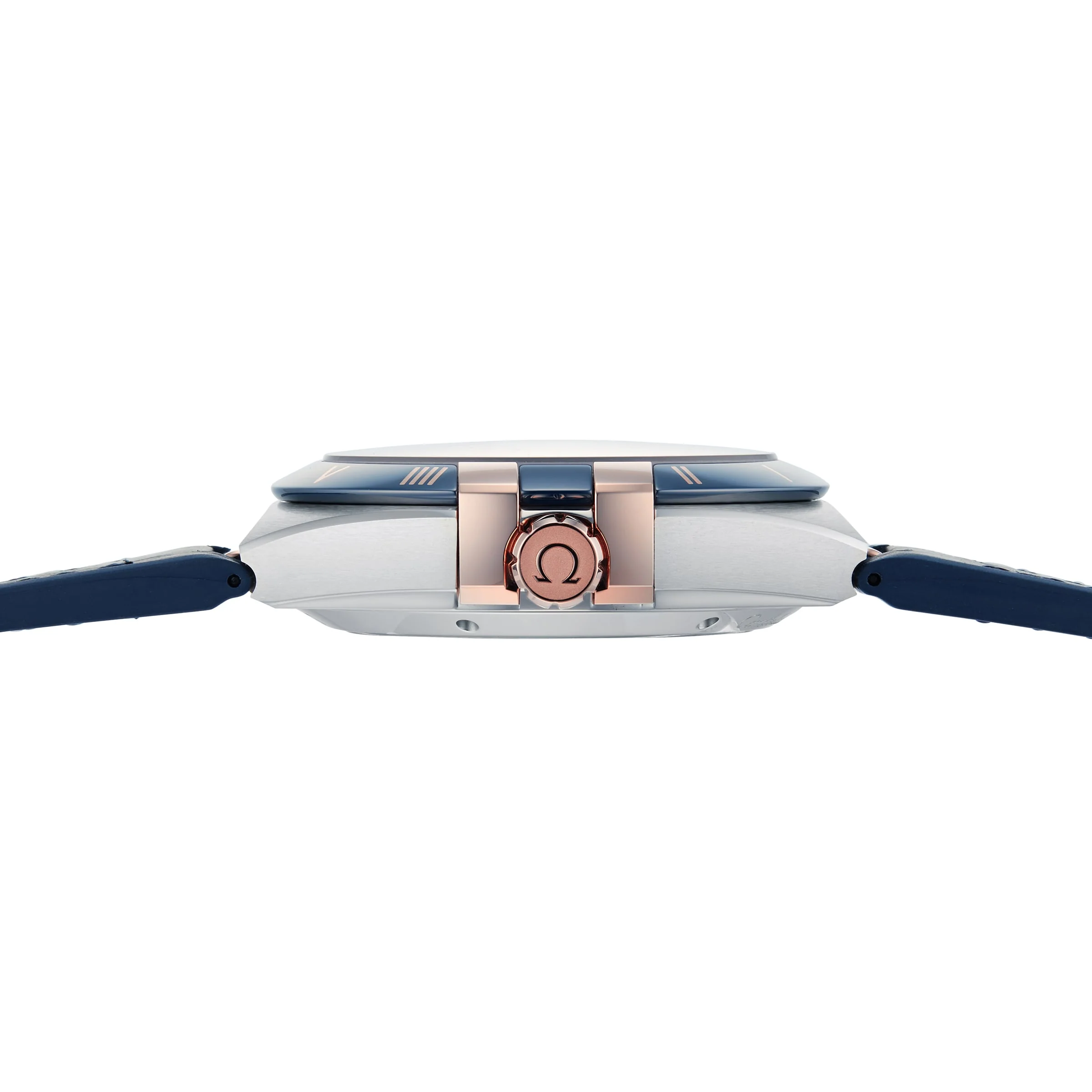 A tribute to Omega’s accomplishments in the 20th century Constellation heritage with the 8900 calibre movement 41mm stainless steel and 18K Sedna™ gold case paired with a blue, rubber-lined leather strap Sun-brushed blue dial framed by a polished blue ceramic bezel Master chronometer certified by METAS ICONIC PRECISION Launched in 1952, the iconic Constellation collection was created to pay tribute to Omega’s countless precision accomplishments during the early 20th century. Powered by the brand’s most advanced movements, the striking models in this collection are characterised by dramatic, enduring design. Each model features four claws on the side of the case, half-moon facets, Roman numerals, and a trapezoidal date window beneath a single star. INCREDIBLE TECHNICAL PERFORMANCE This 41mm timepiece features an 18K Sedna™ gold and stainless steel case, paired with a blue, rubber-lined leather strap. With a sun-brushed finish, the deep blue dial features 18K Sedna™ gold hands and hour markers, and is framed by a polished, blue ceramic bezel with Ceragold™ Roman numerals. Visible through the transparent caseback, the 8900 calibre movement provides flawless precision and impeccable performance.