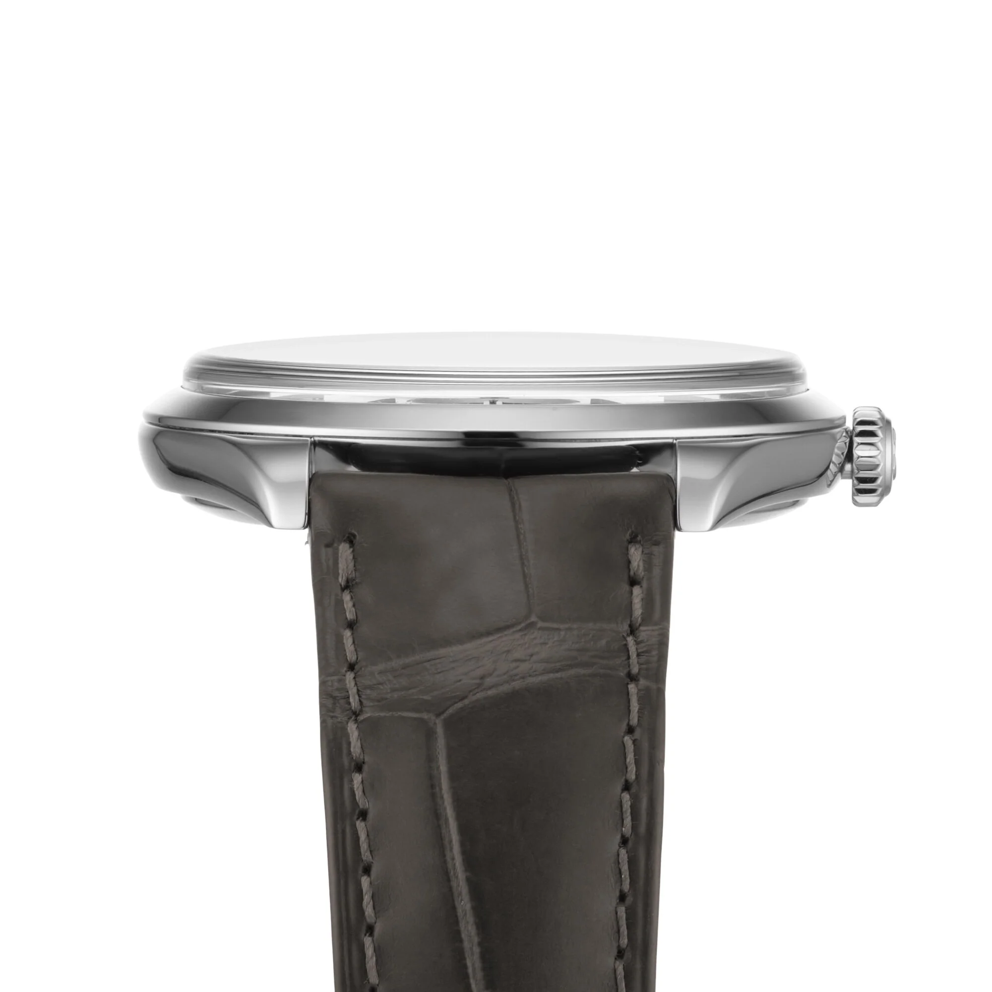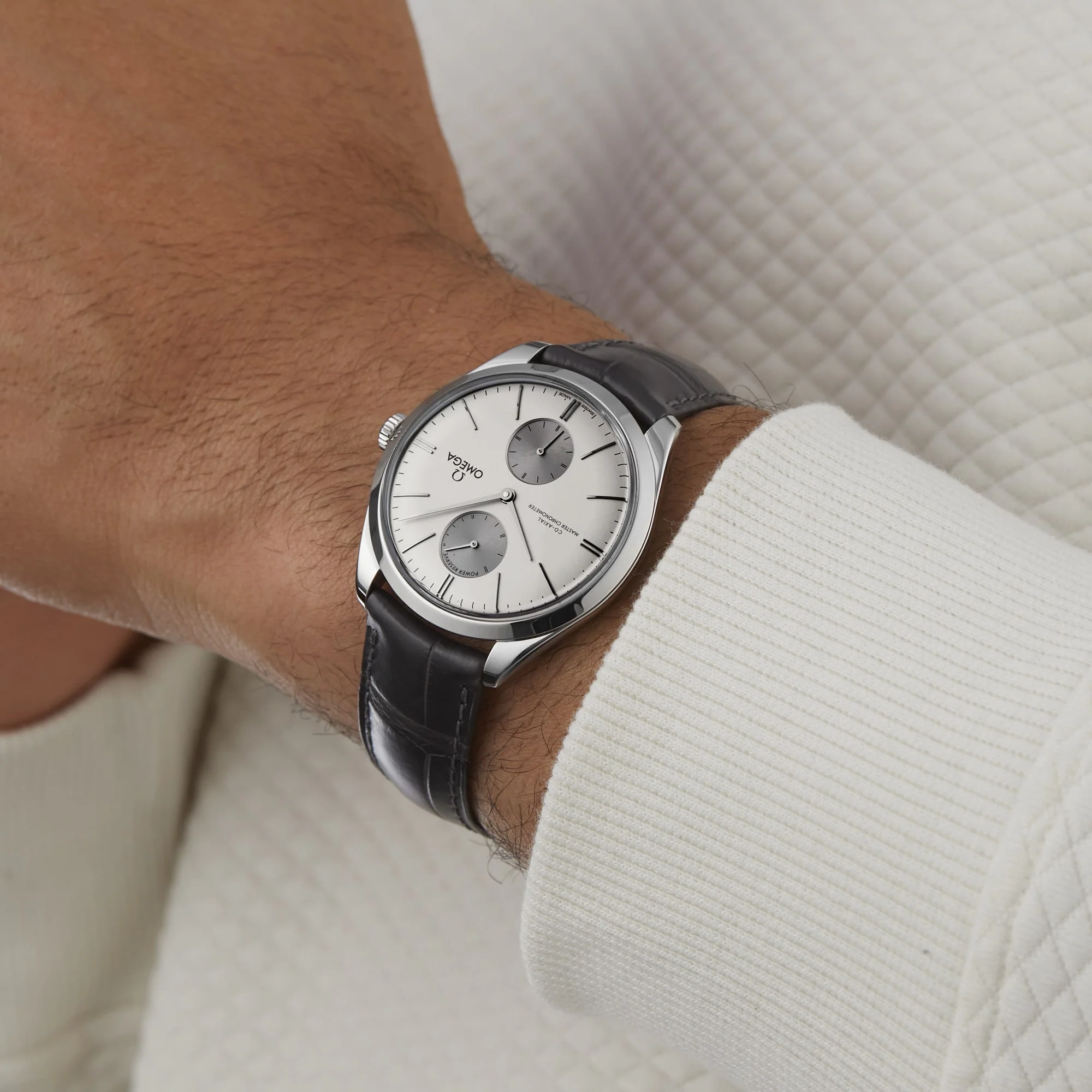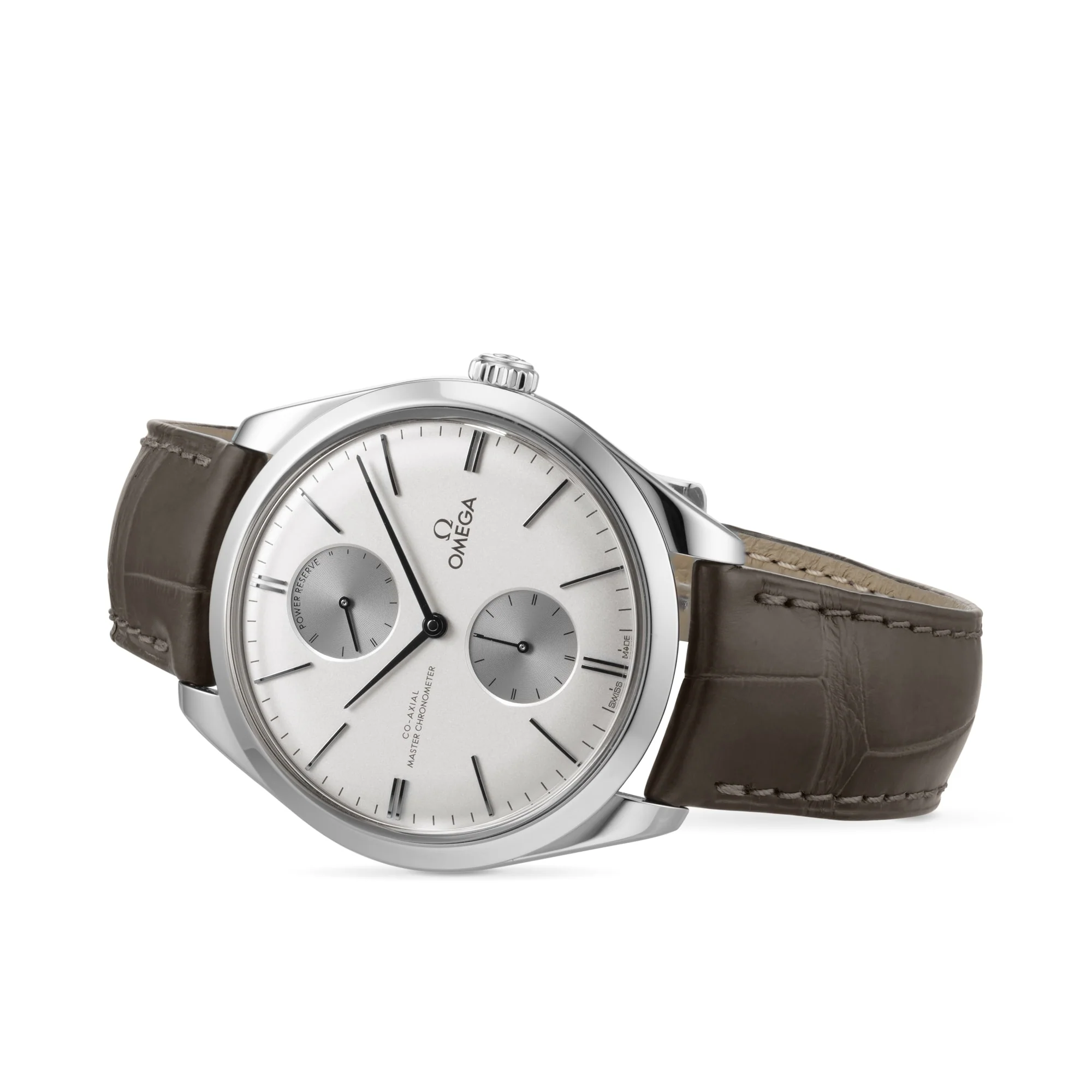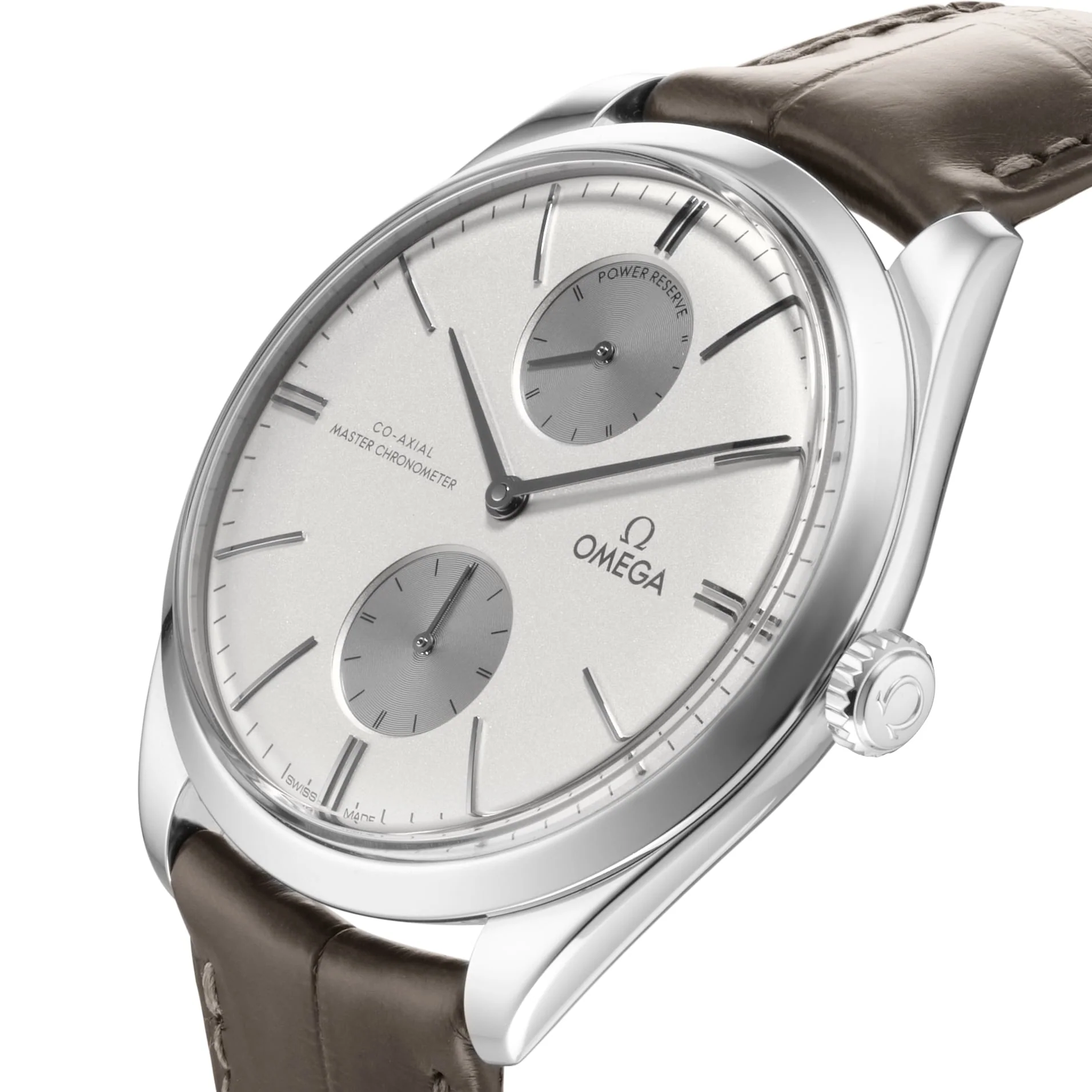 De Ville Trésor - the ultimate choice for simplicity and refinement Beautifully presented in a slim 40mm case crafted from stainless steel Domed two-tone silvery dial with hands and domed indexes in 18K white gold Powered by the OMEGA Master Chronometer Co-Axial Calibre 8934 movement A truly sophisticated model SIMPLICITY AND REFINEMENT Commanding a large, loyal following around the globe, the De Ville Prestige collection is world-renowned for its pure, elegant aesthetic and truly timeless design. First introduced in 1949, the De Ville Trésor line is known for its beautifully slim cases and simple, refined aesthetic. The collection introduces a diverse range of colours and materials, giving pure design a truly modern edge. PURE DESIGN WITH A MODERN EDGE This charming timepiece is centred around a beautiful domed two-tone silvery dial finished with a small seconds display at 6 o'clock and a power reserve display at 12 o'clock, as well as hands and domed indexes in 18K white gold. The slim 40mm stainless steel case fastens with a grey leather strap, complementing the tones of the dial. This high precision timepiece is powered by the OMEGA Master Chronometer Co-Axial Calibre 8934 movement with a 72-hour power reserve.