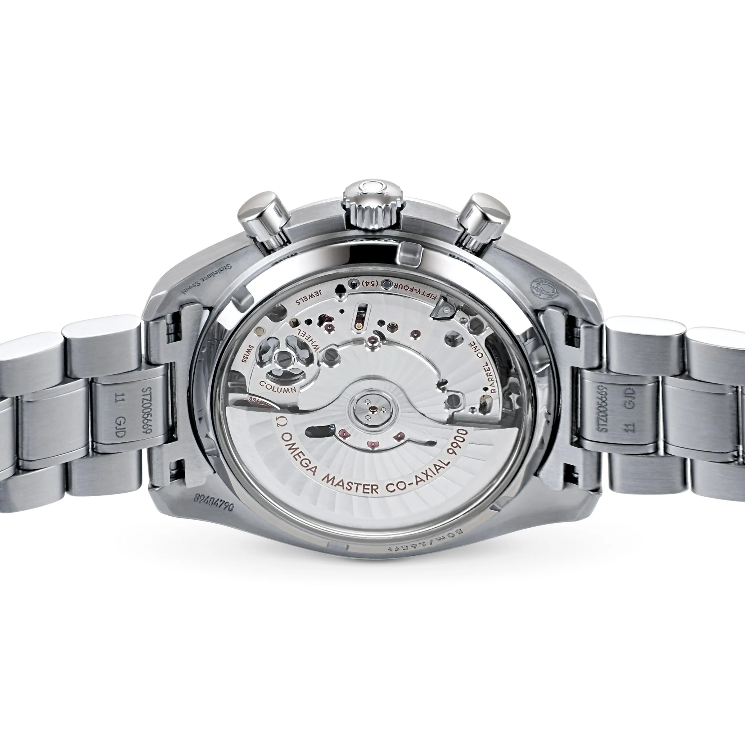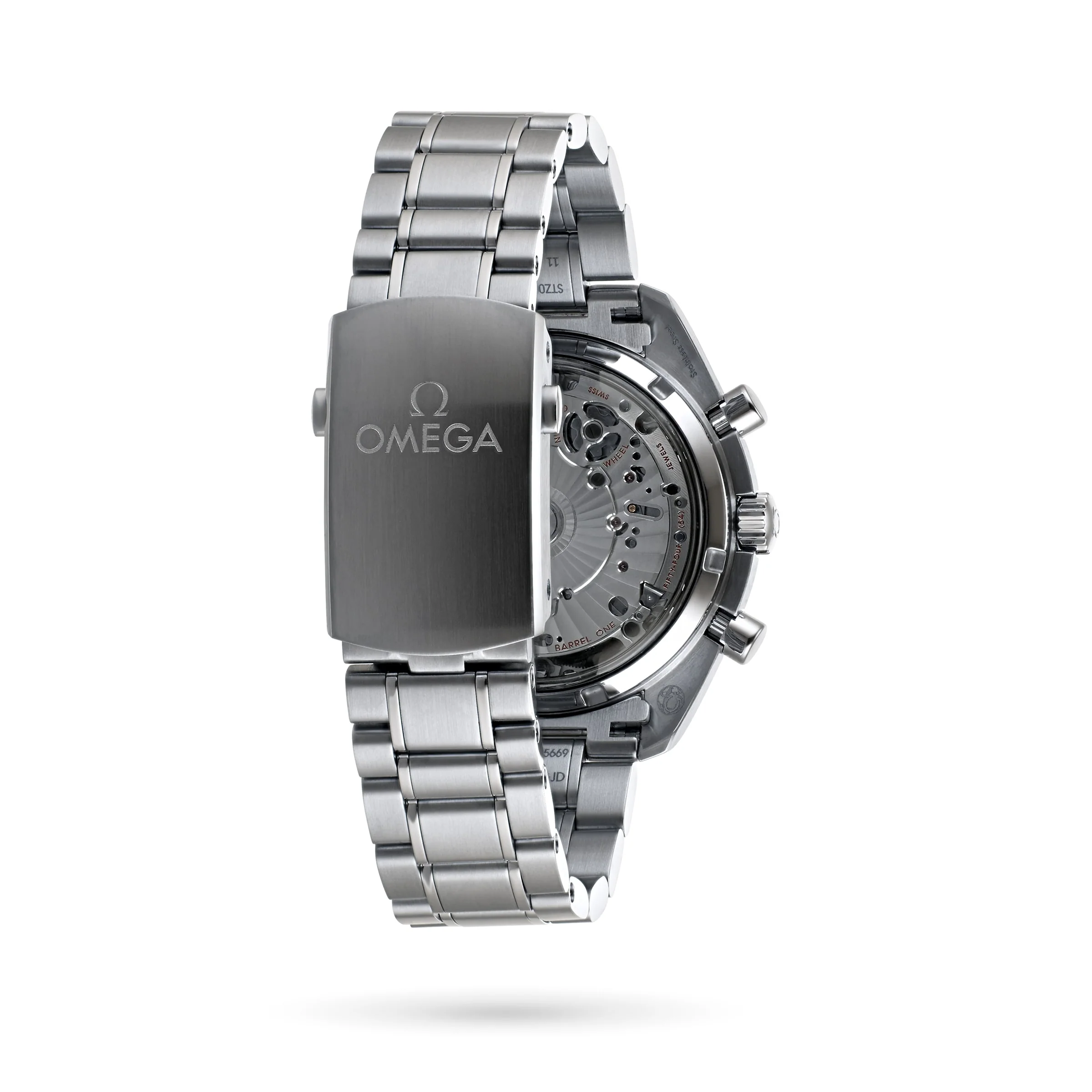 A celebration of OMEGA’s racing achievements Speedmaster heritage featuring the 9900 calibre movement 44.25mm stainless steel case secured with a stainless steel bracelet Anti-magnetic, chronograph and tachymeter features Time zone function DESIGNED FOR THE TRACK The Speedmaster Racing collection celebrates the iconic model’s racing heritage. A distinctive racing style minute track and vivid orange details add a sporty touch to the white dial, while 12-hour and 60-minute recorders add enhanced functionality for the racetrack. GEAR-SHIFTING FEATURES This 44.25mm watch features a stainless steel case paired with a black ceramic bezel ring and stainless steel bracelet. The white dial features two blackened chronograph sub-dials and a 6 o’clock date window. Powering the timepiece, a 9900 calibre movement ensures unrivalled precision and accuracy, even on the racetrack. The calibre is certified by the prestigious Swiss Federal Institute of Metrology (METAS), is water resistant to 5 bar (50 metres) and is resistant to magnetic fields reaching 15,000 gausses.