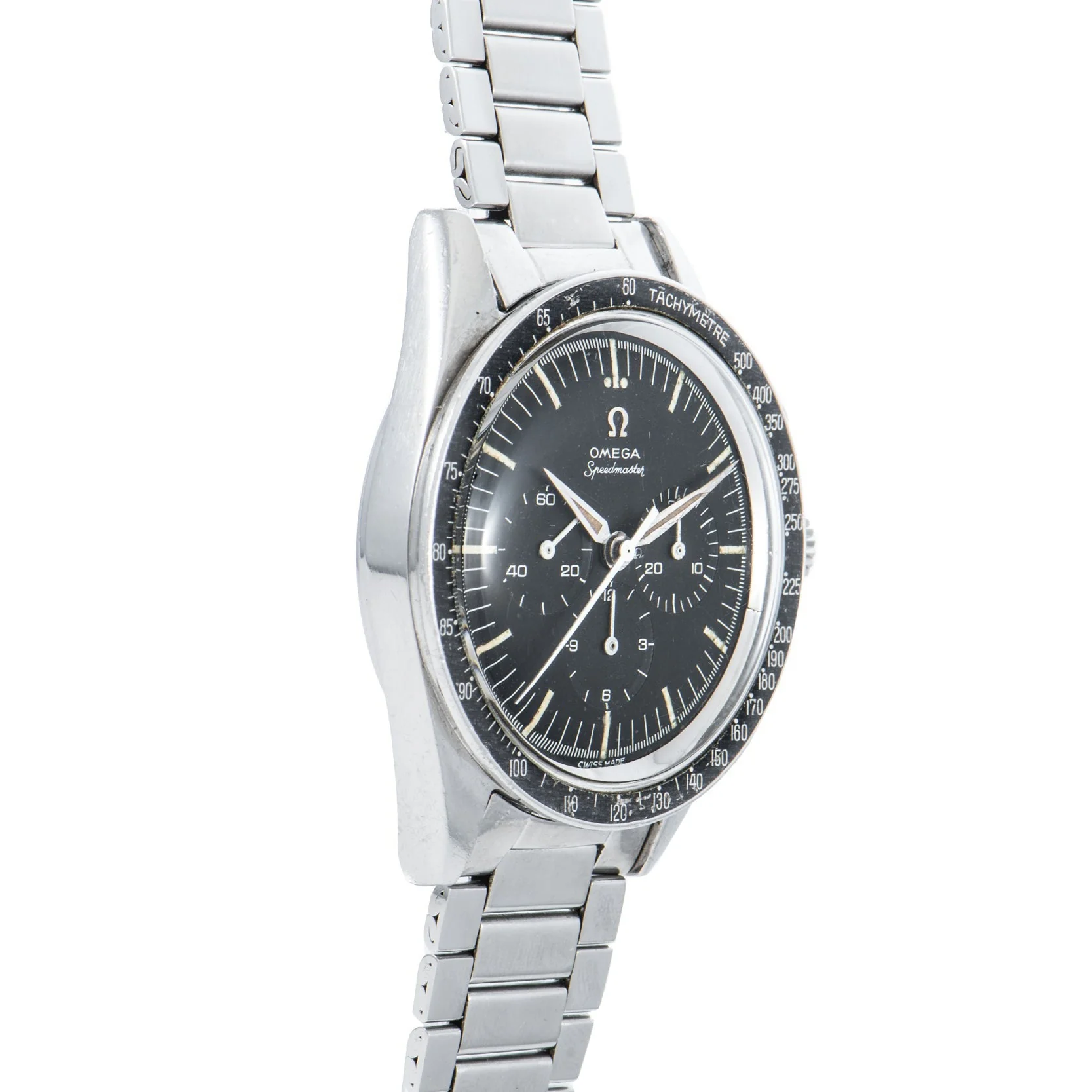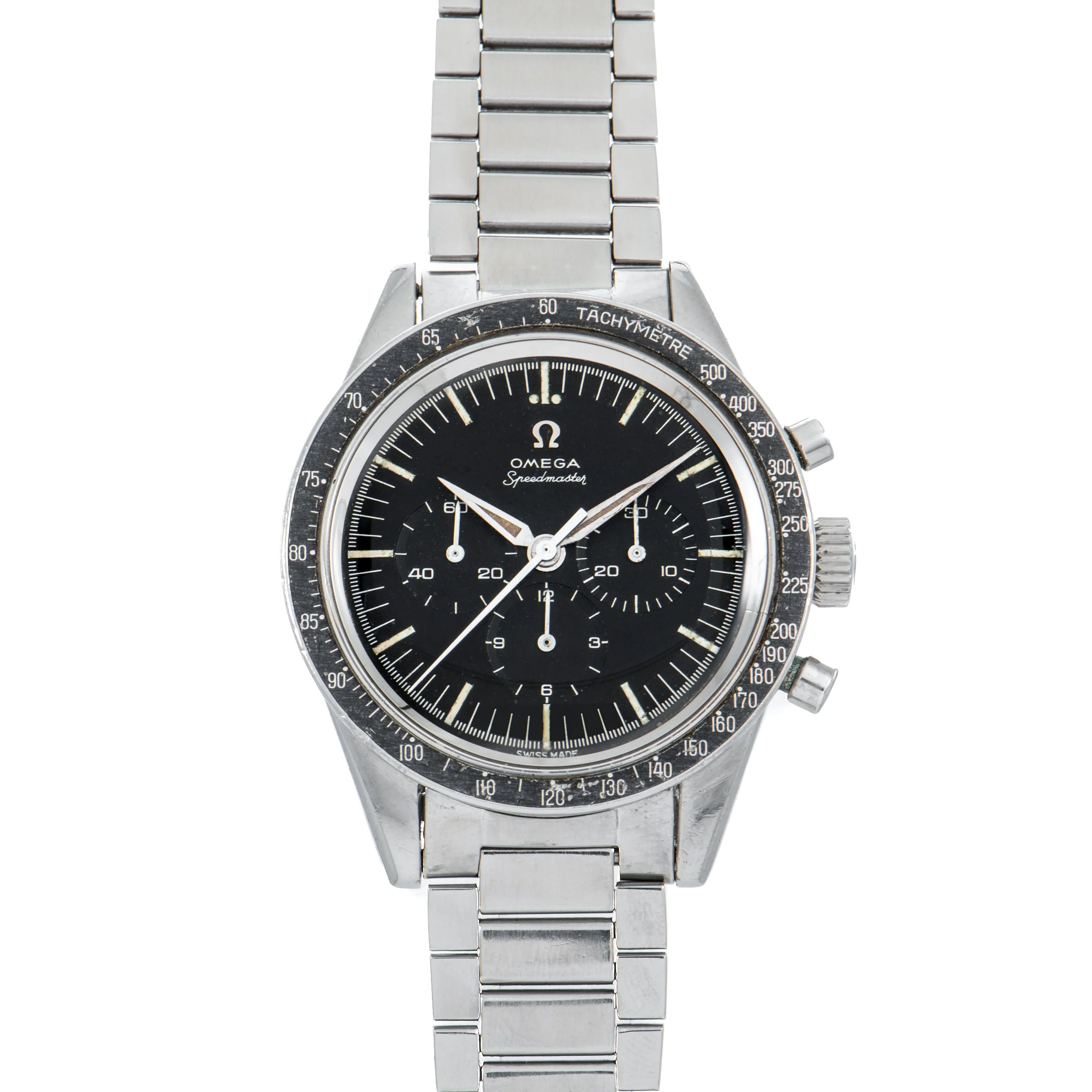 This particular example, a Reference 2998-4, dates to circa 1961 and features a gorgeous, evenly patinated matte black dial with an early alpha handset, Omega's Calibre 321 hand-cranking movement - widely considered to be one of the most significant movements ever made and is nothing short of legendary - and a correct matching flat-link bracelet with a blade clasp.