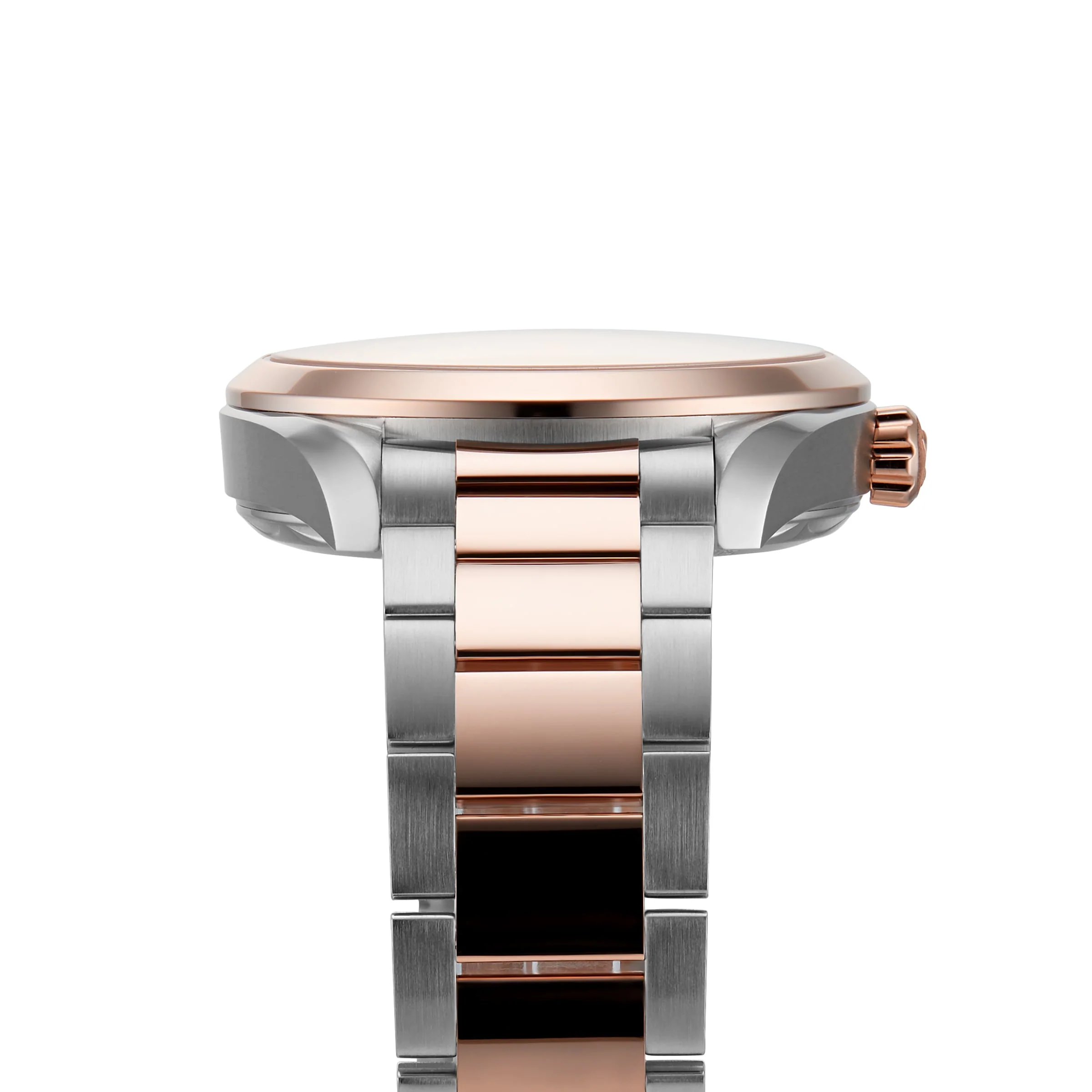 A wonderful tribute to Omega’s rich maritime heritage A Master Chronometer certified by METAS 41 mm 18K Sedna™ gold and stainless steel case paired with a coordinating bracelet Driven by the 8900 calibre movement Transparent caseback with a wave-edged design A CELEBRATION OF OMEGA’S MARITIME LEGACY A tribute to Omega’s rich maritime heritage, the Seamaster Aqua Terra collection balances technical sophistication and ocean spirit. The 150m models offer a refreshing new look, with clean aesthetics, a new symmetrical case design, and Master Chronometer movements with extraordinary levels of magnetic resistance. These timepieces are further characterised by a patterned dial, inspired by the wooden decks of luxury boats. A TOUCHING TRIBUTE Powered by 8900 calibre movement, this 41mm chronometer is certified by METAS for meeting the highest industry standards. The 18K Sedna™ gold and stainless steel case is paired with a matching bracelet, while the transparent caseback with a wave-edged design reveals the movement at work. The silver-tone, sun-brushed dial features 18K Sedna™ gold facetted hands and hour markers, and a date display at 6 o’clock. Performance is enhanced by water resistance to 150 metres and resistance to magnetic fields reaching 15000 gauss.