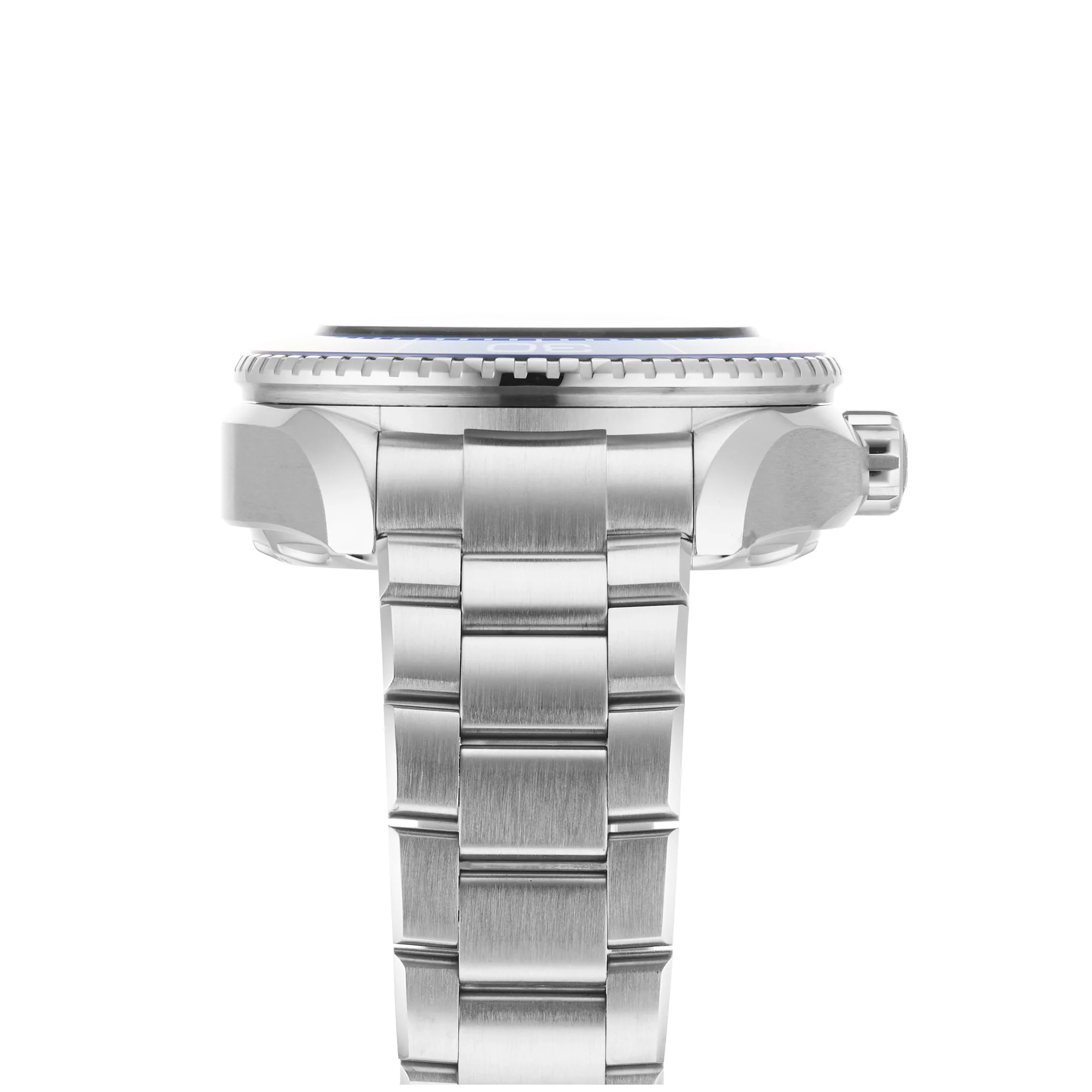 Adapted from the Ultra Deep, which made history by reaching the deepest place on Earth in 2019 Seamaster heritage with 8912 calibre movement Water resistant to 600 bar (6000 metres) 45.5mm O-MEGASTEEL case with an O-MEGASTEEL bracelet Grade 5 titanium caseback with laser-engraved Sonar emblem REACHING HISTORIC DEPTHS The Ultra Deep made history when it reached the deepest place on Earth during the Five Deeps Exhibition in 2019. Adapted from that record breaking model, this unique collection has been tested in real ocean conditions, is water resistant to an impressive 600 bar, and comes with an extra diver extension for the strap. Meeting the ISO 6425:2018 standard for saturation divers’ watches, this remarkable timepiece can perform at new depths. FLAWLESS PRECISION This 45.5mm timepiece features an O-MEGASTEEL case, paired with an O-MEGASTEEL bracelet. This new, high performance stainless steel alloy offers greater polish and shine, as well as superior strength. The white enamel dial provides a refined backdrop for 18K white gold hands and hour markers, finished with white Super-LumiNova for enhanced visibility. The polished, blue ceramic bezel and the four blue numerals add a vibrant touch of colour to this statement timepiece, while the 8912 calibre movement provides unrivalled precision in any conditions.