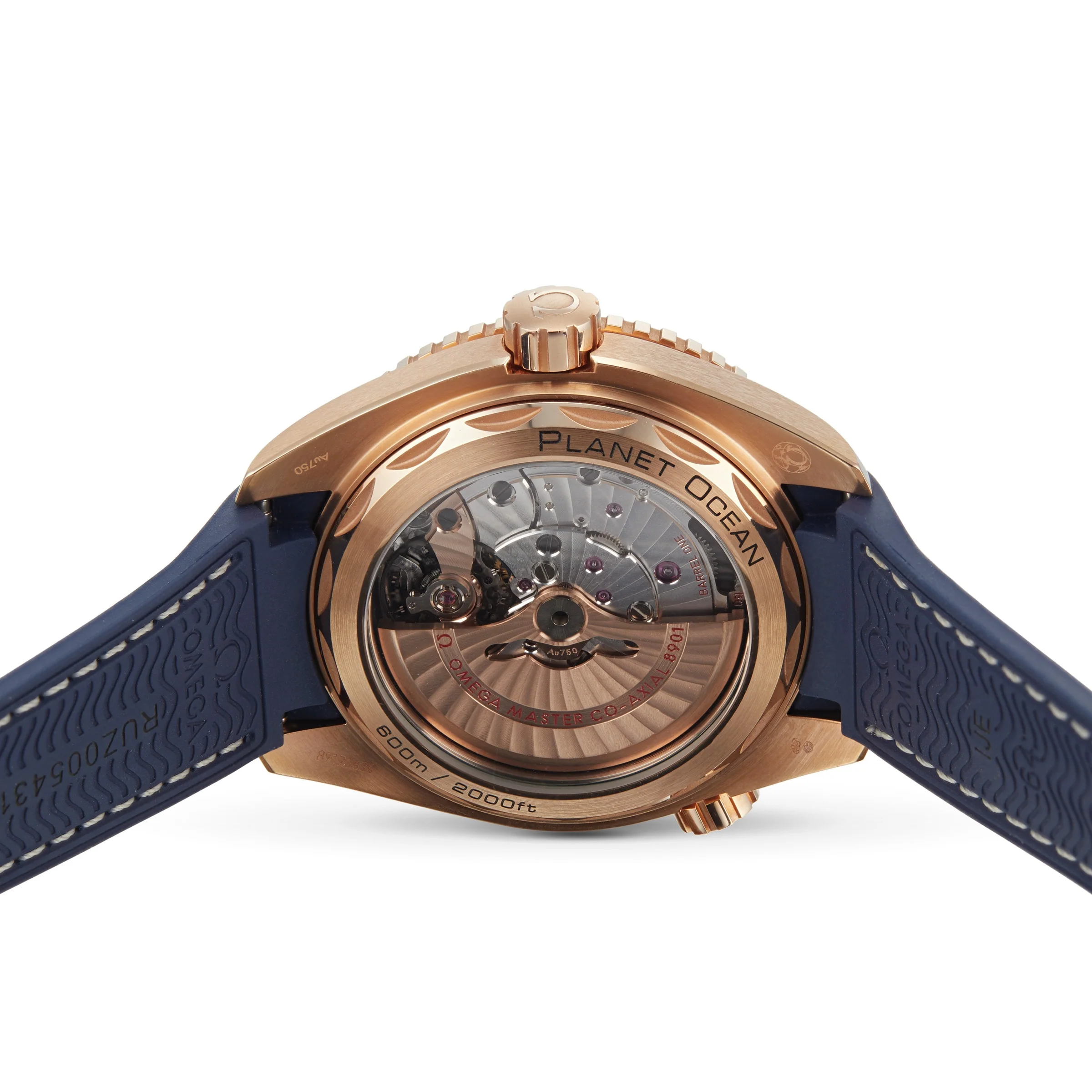 With OMEGA’s maritime legacy in mind, the Seamaster family welcomed the Planet Ocean collection in 2005. Exceptional engineering and stylish aesthetics pay homage to the brand’s diving heritage. Designed to deliver outstanding precision and performance, this OMEGA Seamaster Planet Ocean Master Chronometer Watch benefits from the OMEGA Master Chronometer calibre 8901 self-winding movement, an alveol screw-in case, a helium escape valve and anti-magnetic protection. Set within a 43.5mm 18ct Sedna™ gold case with a blue ceramic unidirectional bezel with an OMEGA Ceragold™ diving scale, the blue ceramic dial is equipped with Arabic numerals, a date display window at 3 o’clock and a scratch-resistant sapphire crystal glass. Water resistant to 600 metres, this exceptional timepiece fastens with a blue leather strap with a rubber lining and an 18ct Sedna™ gold clasp. Discover the full range of Omega watches.