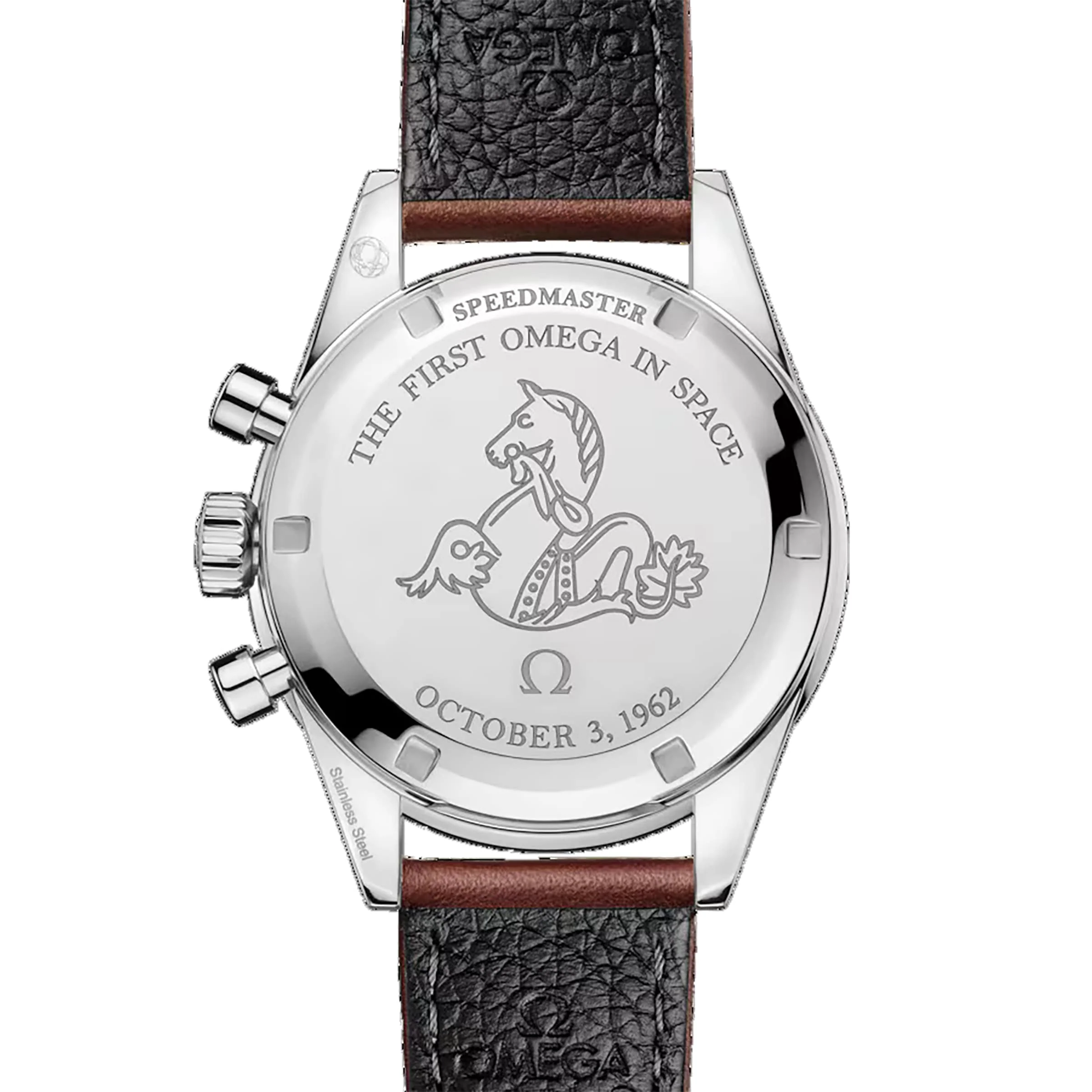 On October 3rd, 1962, the Speedmaster CK 2998 became the first OMEGA worn in space, when the astronaut Walter Schirra wore his personal model on the Sigma 7 mission of the Mercury programme. This updated version is a tribute to that pioneering timepiece and captures the same 2nd generation Speedmaster style in modern form. The 39.70 mm case is crafted in polished and brushed stainless steel and features a brown leather strap with a stainless steel buckle. The bezel ring is presented in black aluminium and includes the legendary tachymeter scale with an emblematic “Dot Over Ninety”. Beneath the brand new hesalite-like form sapphire crystal, the grey-blue dial is CVD coated, to replicate the tone of some CK 2998 watches produced in the 1960s. Along with indexes and hour/minute “Alpha” hands that are filled with vintage Super-LumiNova, the central seconds “Baton” hand is white varnished to match the transferred markings. Subdials include a 30-minute recorder at 3H, a 12-hour recorder at 6H, and a small-seconds display at 9H. A vintage OMEGA logo is applied on the dial, as well as on the crown, while the caseback features the famous Seahorse medallion, and the engravings, “THE FIRST OMEGA IN SPACE” and “OCTOBER 3, 1962”. The watch is driven by the Co-Axial Master Chronometer Calibre 3861, which is the most up-to-date version of the Calibre 321 worn by astronauts in space. Each watch is delivered inside a special presentation box with a “LEGENDARY MOONWATCH” leaflet inside.
