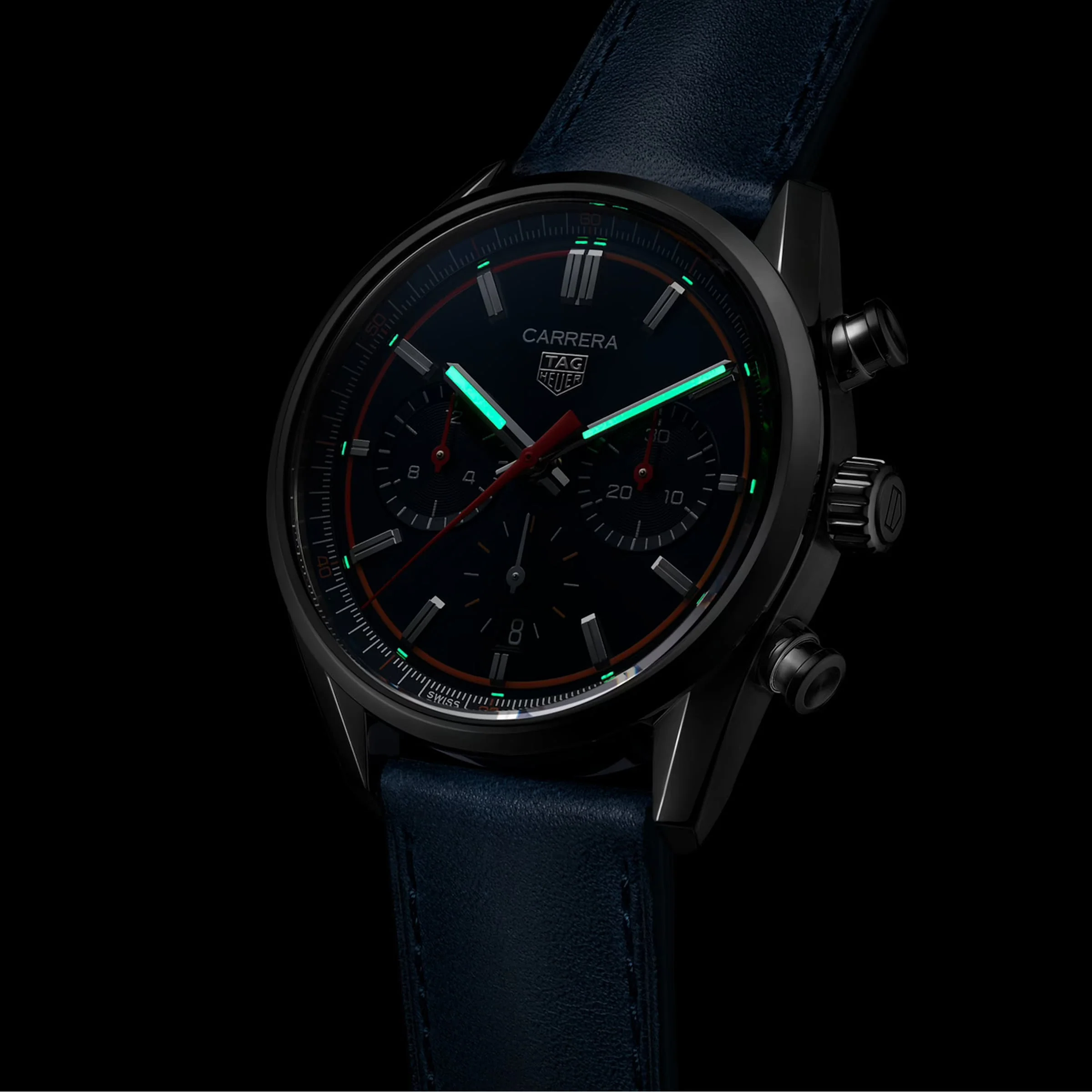 Carrera- modern and dynamic Presented in a 42mm steel case An intense blue dial paired with a blue calfskin strap Powered by calibre Heuer 02 movement Complete with vibrant orange detailing A TRIBUTE TO THE CARRERA PANAMERICANA RACE Born on the racetracks in 1963, the Carrera collection embraces the spirit of endurance and outstanding performance. Designed for professional drivers, yet with an elegant sense of style, the collection pays tribute to the infamous Carrera Panamericana race. MODERN AND DYNAMIC A 42mm steel case provides this Carrera model with water resistance to 10 bar (100 metres) and protects the in-house calibre Heuer 02 movement. Featuring a speedometer-like orange gradient circle running along the flange, the intense blue dial complements the high- end blue calfskin strap, providing elegance and strength to the timepiece. Complete with vibrant and vivid orange detailing against the signature blue, this chronograph is like no other.