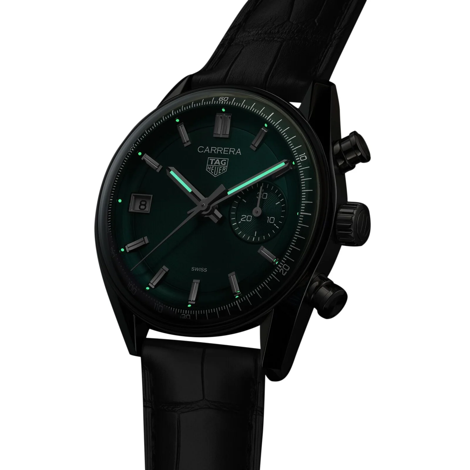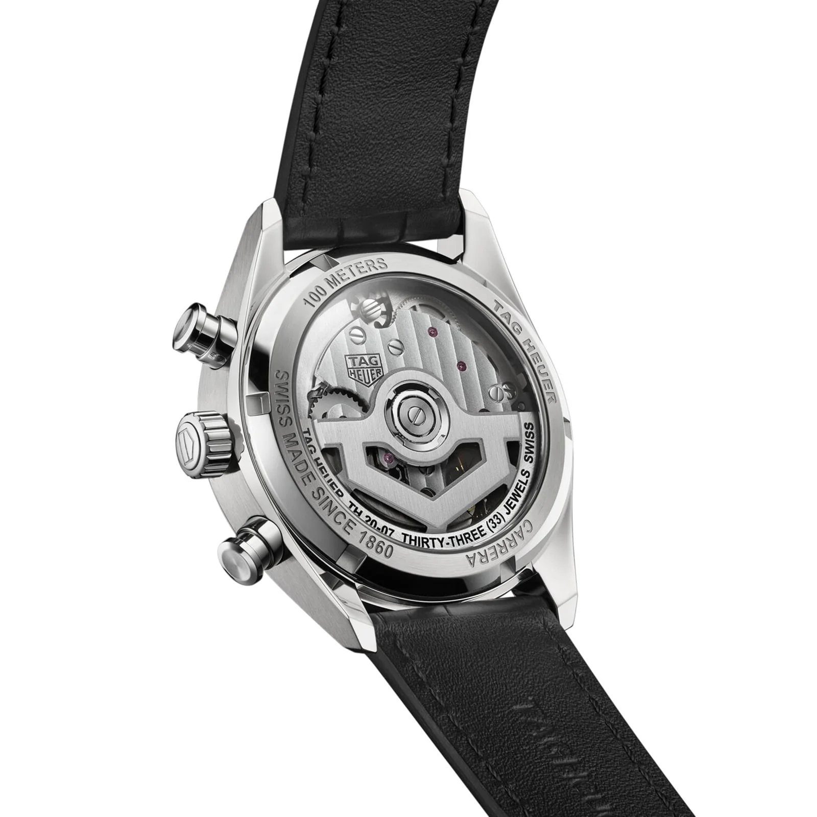Carrera - reaching new heights Presented in a 39mm steel case with a black leather strap Circular-brushed teal dial with applied hands and indexes Driven by the in-house TH20-07 automatic movement Complete with an 80-hour power reserve and water resistance to 10 bar (100 metres) A TRIBUTE TO THE CARRERA PANAMERICANA RACE Born on the racetracks in 1963, the Carrera collection embraces the spirit of endurance and outstanding performance. Designed for professional drivers, yet with an elegant sense of style, the collection pays tribute to the infamous Carrera Panamericana race. A SIGNATURE DESIGN WITH A MODERN TWIST Encapsulating the daring spirit of the collection's 60th anniversary, this Carrera model features a 39mm steel case paired with a luxurious black alligator leather strap. Covered by domed sapphire crystal, the thrilling circular-brushed dial boasts a single minute chronograph counter at 3 o'clock and an angled date window at 9 o'clock. Driven by the new in-house TH20-07 DATO chronograph movement, this watch is equipped with features an 80-hour power reserve and water resistance to 10 bar (100 metres). A seamless blend of the brand's rich past and innovative future.