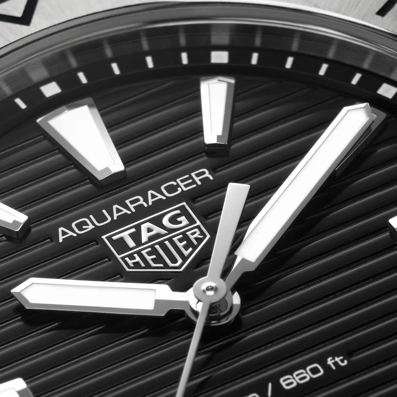 Aquaracer – pushing limits in search of greater performance An essential ally in your achievement Versatile 40mm stainless steel case with a co-ordinating steel bracelet Black sunray brushed technical dial with rhodium-plated hands and hour markers for optimum legibility Driven by powerful Quartz movement OVERCOME YOUR LIMITS Re-launched in 2021, the Aquaracer collection has re-written sports watch design and performance codes to take wearers beyond the edge as they push their limits in search of ever-greater performance. The Aquaracer Professional 200 collection unites robust construction with boldness of design. Prestigious and resilient, the 40mm stainless steel case embraces refined ergonomics and finishes, while the black sunray brushed dial features a bold horizontal pattern with rhodium-plated hands and indexes for enhanced visibility. ENDURE ANY CONDITIONS This versatile 40mm model pairs a stainless steel case with a co-ordinating steel bracelet, complete with double safety push buttons and a comfort extension link. Finished with a horizontal pattern, offering a nod to the decks of boats, the dial features luminescent hands and hour markers for legibility in even the most extreme environments. Incredible precision is provided by a reliable quartz movement, while water resistance to 20 bar (200 metres) further enhances performance.