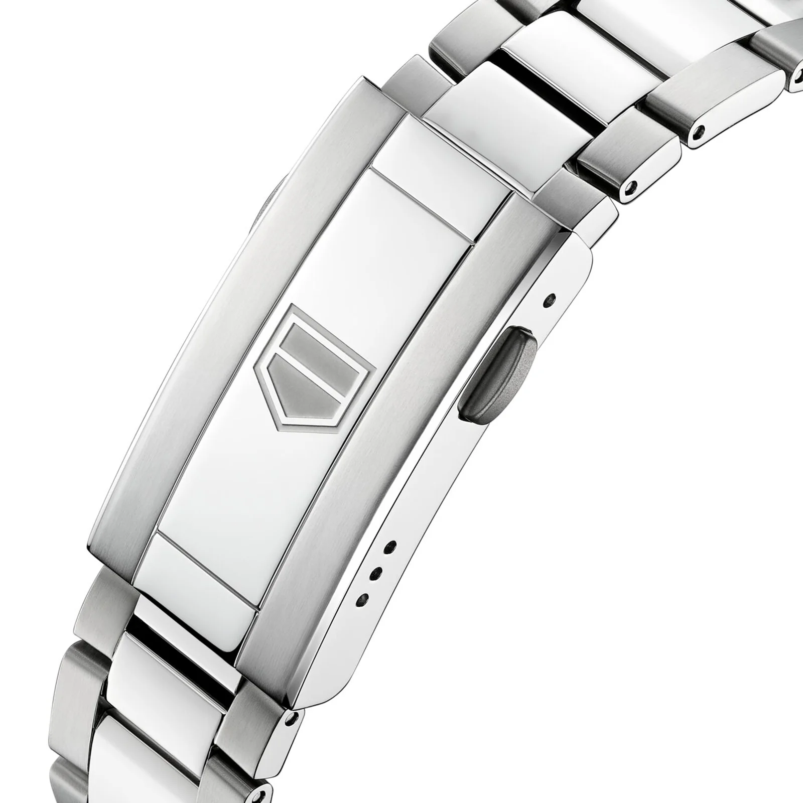 You’re all set to face the ocean's most enduring challenges with this TAG Heuer Aquaracer Professional 300. This 42 mm watch, driven by the COSC-certified Calibre TH31-00, is your steadfast ally for deep-sea endeavours. The black wavy pattern dial shows luminous white Super-LumiNova®-filled indexes and hands, while a light blue central hand adds a splash of color. Encased in a fine- brushed, polished steel frame, the black ceramic 60-minute scale unidirectional bezel offers high-end ergonomics and a tactile turning experience. As robust as ever, the steel three-row bracelet, with a folding clasp featuring double safety push-buttons, ensures a secure fit for your underwater journeys.