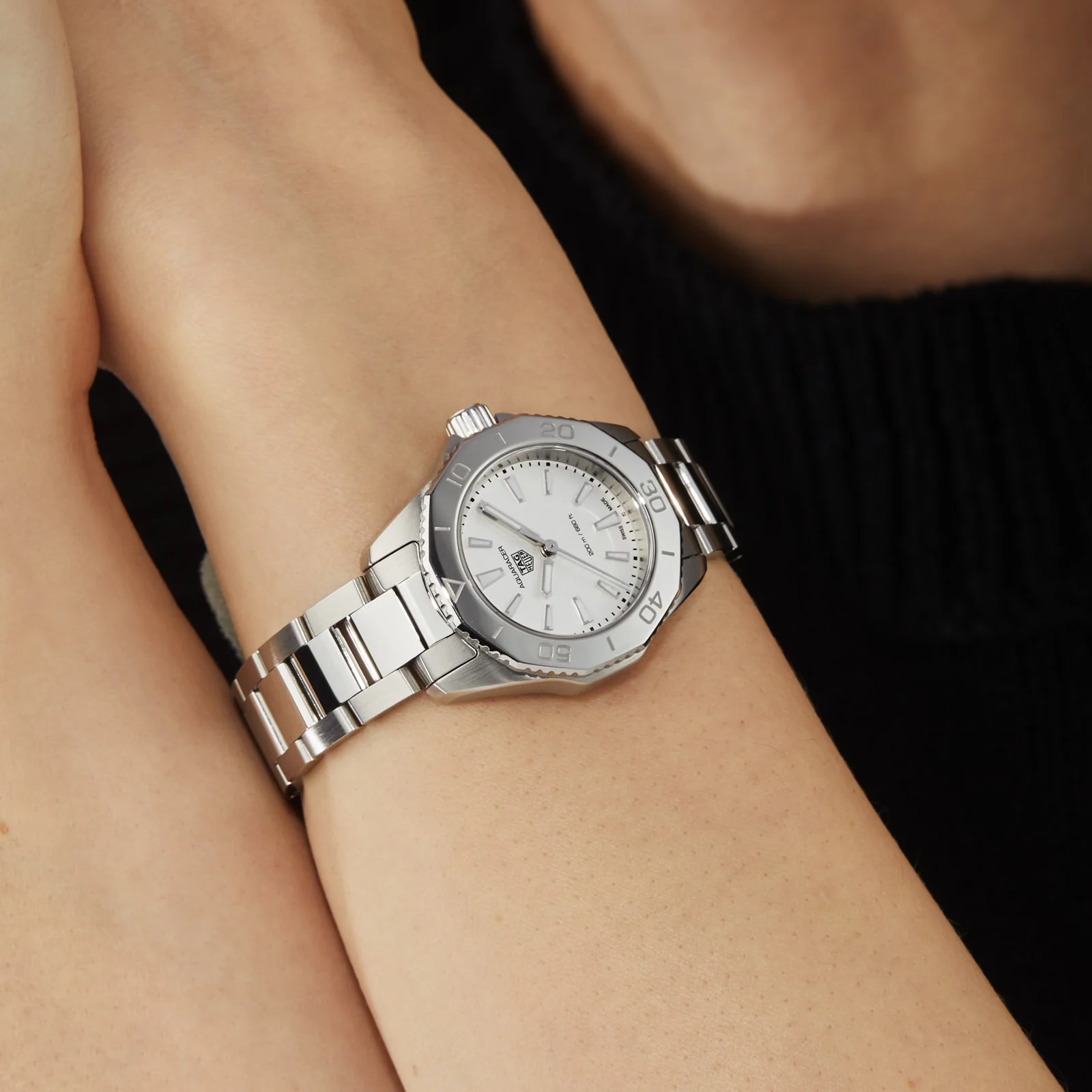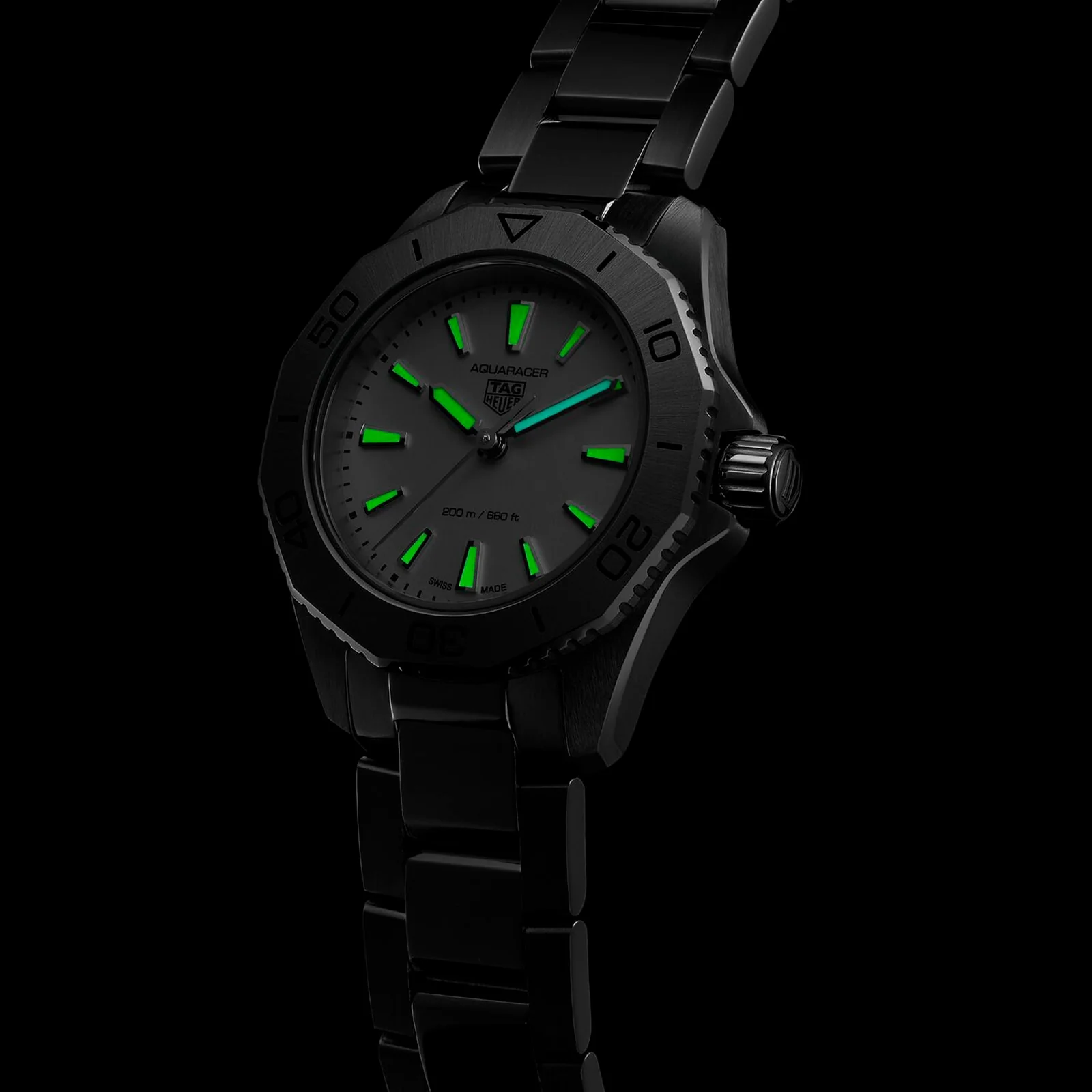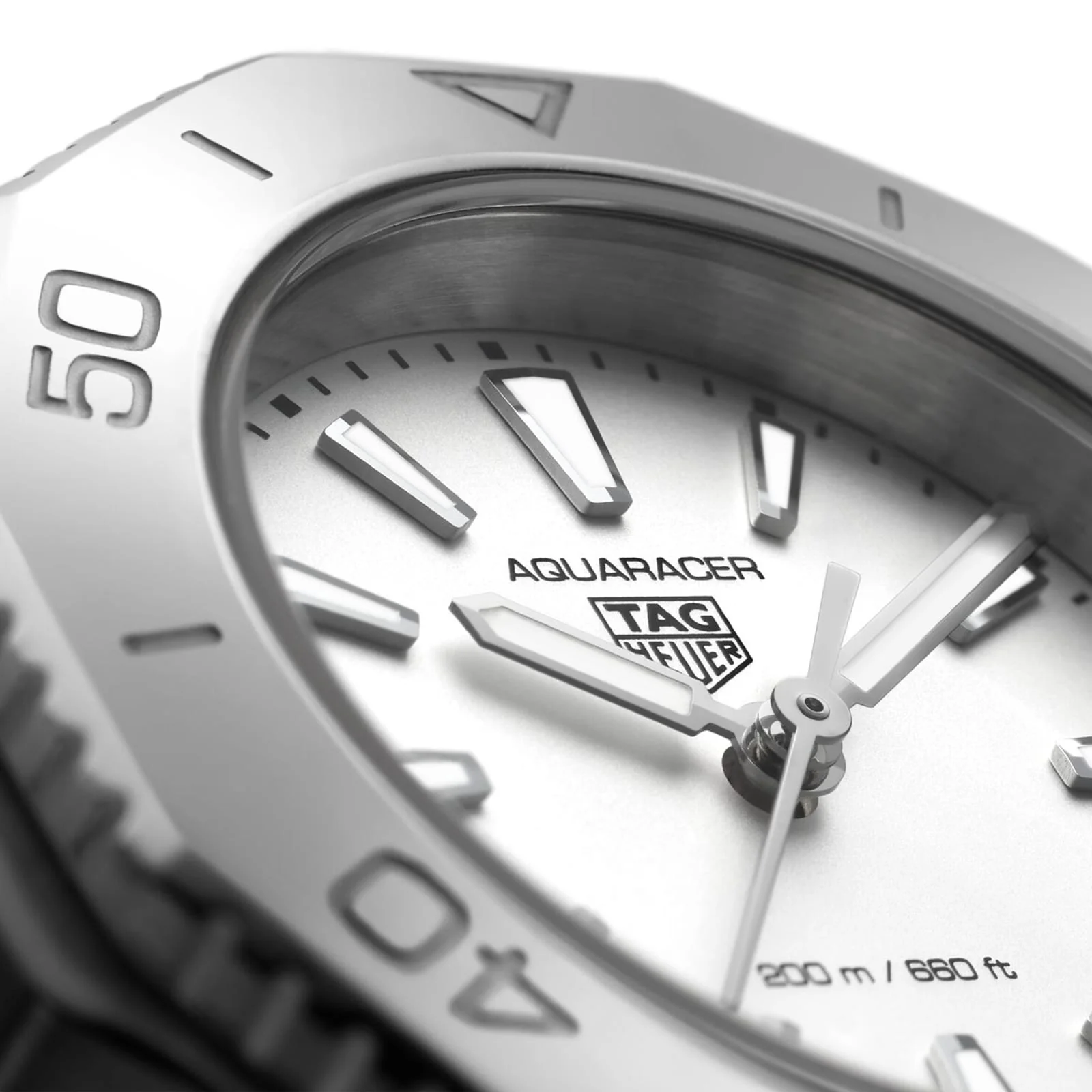 Aquaracer – pushing limits in search of greater performance Robust construction and bold design Refined 30mm stainless steel case with a co-ordinating bracelet Silver sunray brushed dial with Super-LumiNova filled hour markers Powered by a reliable Quartz movement READY FOR ANYTHING Re-launched in 2021, the Aquaracer collection has re-written sports watch design and performance codes to take wearers beyond the edge as they push their limits in search of ever-greater performance. The Aquaracer Professional 200 collection unites robust construction with boldness of design. Designed to go anywhere in style, the 30mm stainless steel case embraces refined ergonomics and finishes, while the shimmering silver sunray brushed dial makes a stylish statement. VERSATILE STYLE Unmistakably bold, this 30mm model pairs a stainless steel case with a co-ordinating steel bracelet. Creating a beautiful contrast against the sports-inspired case, the silver dial shimmers, while hands and indexes filled with Super-LumiNova provide enhanced visibility, day and night. The reliable Quartz movement ensures flawless precision. Performance is further enhanced by water resistance to 20 bar (200 metres).