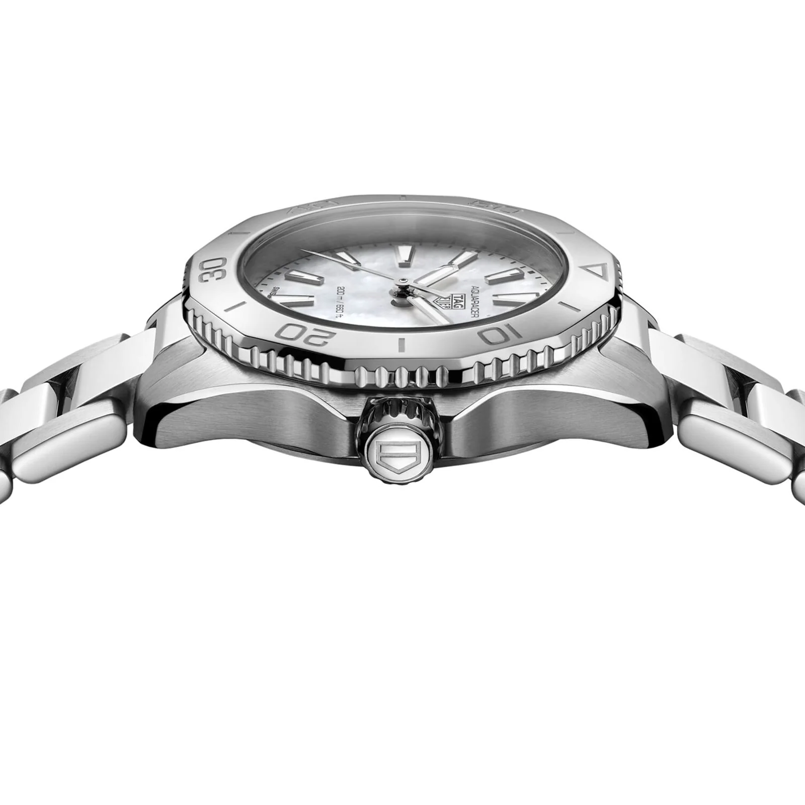 Aquaracer - pushing limits in search of greater performance Robust construction and bold design Refined 30mm stainless steel case with a co-ordinating bracelet Ethereal white mother-of-pearl dial Powered by reliable Quartz calibre movement THE AQUARACER COLLECTION Re-launched in 2021, the Aquaracer collection has re-written sports watch design and performance codes to take wearers beyond the edge as they push their limits in search of ever-greater performance. The Aquaracer Professional 200 collection unites robust construction with boldness of design. OPAL DREAM This 30mm model pairs a stainless steel case with a co-ordinating steel bracelet. The ethereal white mother-of-pearl dial is enhanced by luminescent hands, hour markers and a date display at 6 o'clock. A reliable Quartz calibre movement offers incredible precision that will take you further than ever, while water resistance to 20 bar (200 metres) further enhances performance.