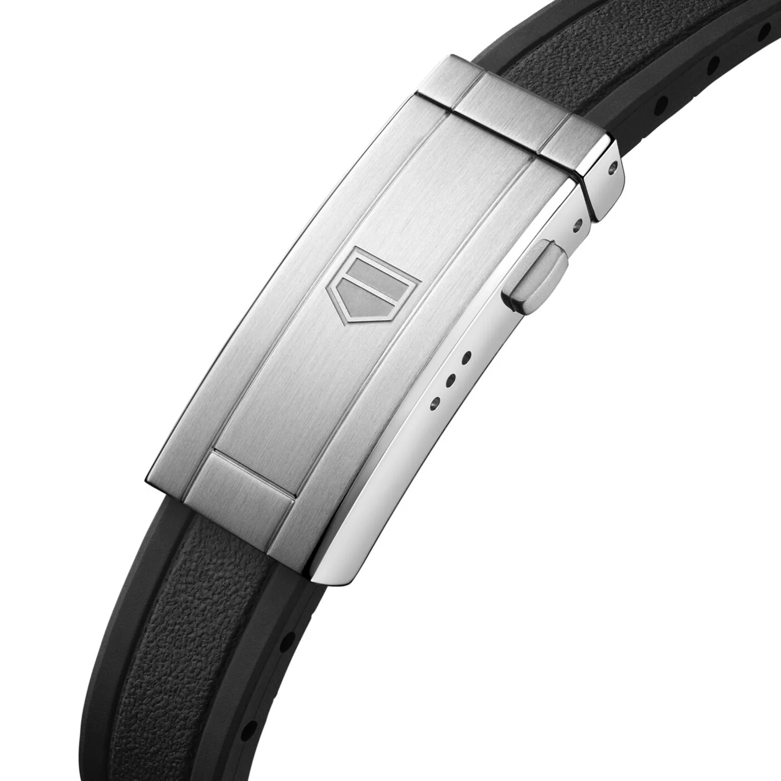 Aquaracer- a luxurious appearance 11 sparkling diamond indexes elevate the black mother-of-pearl dial An 18K 5N solid rose gold bezel complements the 30mm steel case Driven by calibre 9 automatic movement Complete with water resistance to 20 bar (200 metres) THE STORY CONTINUES Re-launched in 2021, the Aquaracer collection has re-written sports watch design and performance codes to take wearers beyond the edge as they push their limits in search of ever-greater performance. The TAG Heuer Aquaracer Professional 200 is the latest chapter in the story of this iconic collection. Clean and colourful, this model is the ultimate go-anywhere watch, designed to cross time zones and dive and surf all over the world. Combining a fresh and sporty style with extreme technical construction, this high-performance timepiece is characterised by an extreme 30mm case featuring 20 bar (200 metres) of water resistance. A SPARKLING DELIGHT 11 sparkling diamond indexes and 18K 5N rose gold-plated hands elevate the black mother-of-pearl dial, protected by the 30mm steel case and secured with a tapered black rubber strap complete with ergonomic extension link. Coupled with the resilient case, an 18K 5N solid rose-gold bezel and matching screw-down crown lie front and centre. This timepiece is driven by calibre 9 automatic movement and secured by a versatile black rubber strap. Water resistance to 20 bar (200 metres) further enhances performance.
