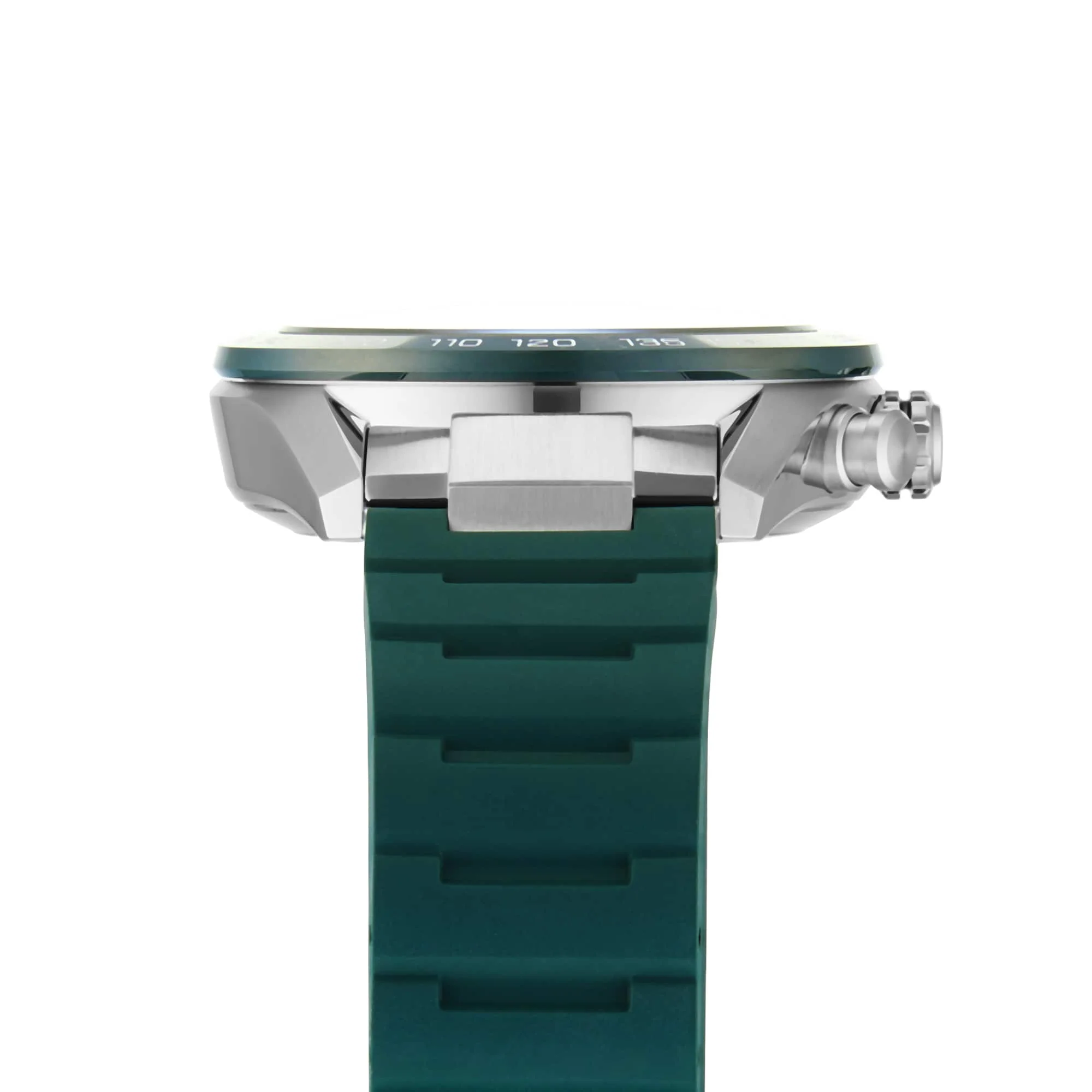Carrera - embracing the spirt of endurance A distinct sense of style with a prestigious motor-racing heritage 44mm steel case with a green rubber strap Contemporary green brushed dial with luminous hands and hour markers Driven by the Heuer 02 calibre movement for exceptional reliability THE CARRERA COLLECTION Born on the racetracks in 1963, the Carrera collection embraces the spirit of endurance and outstanding performance. Designed for professional drivers, yet with an elegant sense of style, the collection pays tribute to the infamous Carrera Panamericana race. A sports watch more than equipped to keep pace with high achievers, this TAG Heuer Carrera 02 model offers all the prestige of its motor-racing heritage. Driven by the Heuer 02 calibre automatic movement, this sophisticated timepiece boasts a distinct sense of style, with a contemporary, green brushed dial punctuated with three green chronograph counters. FOREST GLIMMER This 44mm model pairs a brushed and polished steel case with a green rubber strap. Mounted to the case is the fixed bezel complete with a tachymeter scale. Protected by a bevelled sapphire crystal dome, the striking brushed green dial is enhanced with rhodium plated hands, three chronograph counters, a date display, and indexes filled with Super- LumiNova® for incredible readability in all conditions. The screw-down sapphire case back reveals the Hauer 02 calibre movement at work, while an 80-hour power reserve ensures flawless performance.