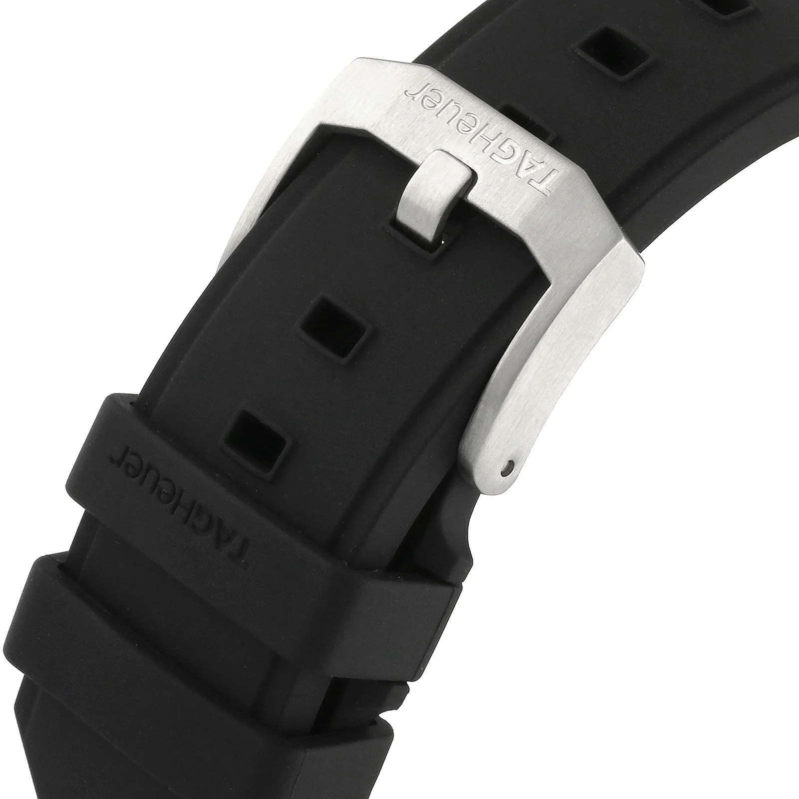 The Formula 1 range pairs iconic style with innovative performance Designed with speed and power in mind 41mm brushed steel case with paired with a perforated black rubber strap Bold black dial with luminescent markers, framed by a black PVD racing bezel Powered by exceptional Quartz movement INSPIRED BY THE RACE Undeniable performance and style, reinvented for the modern age – the TAG Heuer Formula 1 collection gives a nod to the brand’s iconic roots while revealing a fresh new feel, designed for precision and speed. Launched in 2021, the range pairs sophistication and luxury with a refreshing, showstopping design. This tough and reliable model is designed to be easy to read in all conditions, with Super-LumiNova® indexes and hour markers, alongside a red tipped central hand. TOUGH AND RELIABLE This 41mm model pairs a brushed steel case with a black PVD unidirectional bezel, complete with a tachymeter scale. The bold black dial is ready for anything, with high visibility hands and indexes, a date display at 3 o’clock, and oversized 12 and 6 numerals. Driven by precision Quartz movement with 20 bar (200 metres) of water resistance, this timepiece promises accuracy and style, both on and off the track.