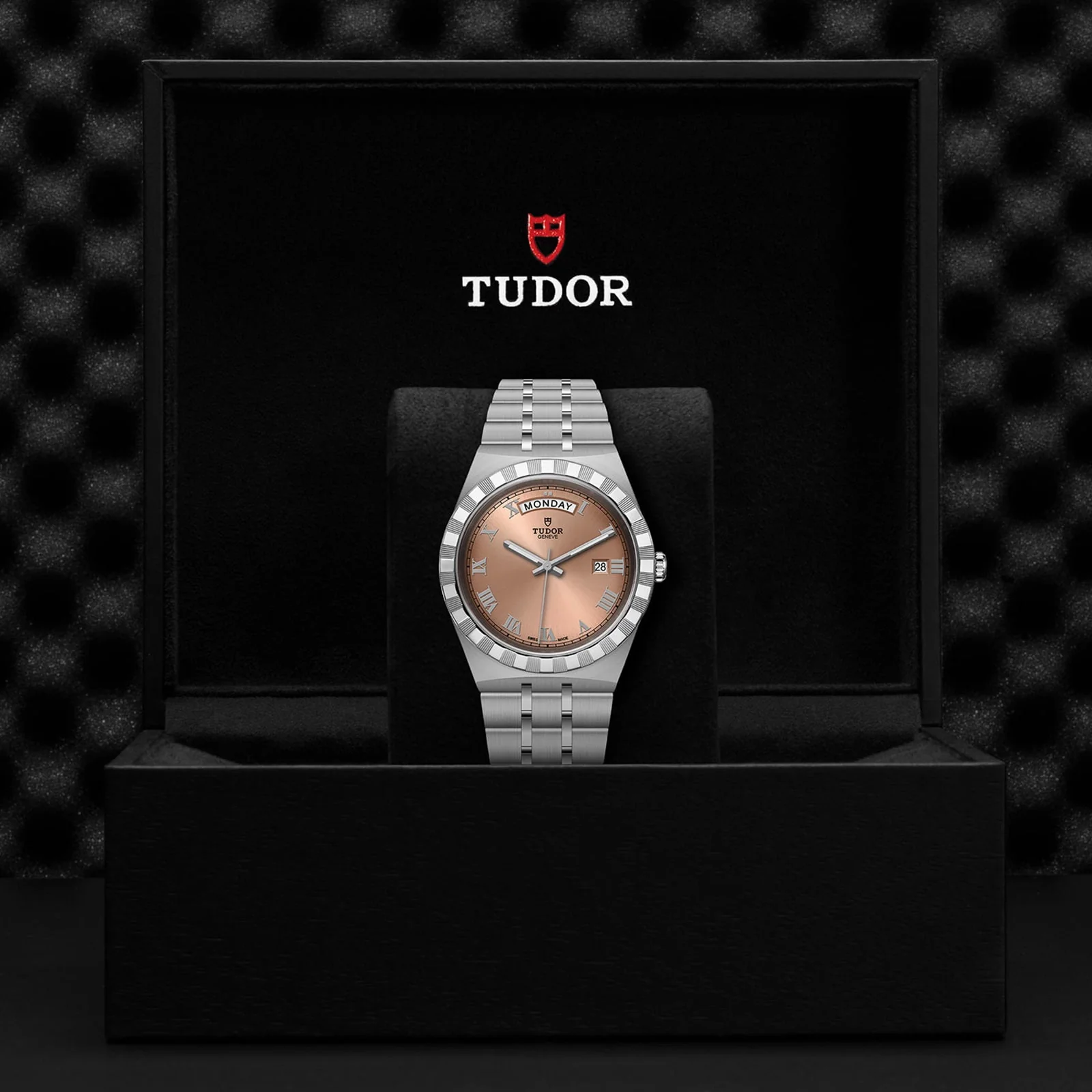 With its integrated metal bracelet, notched or diamond set bezel and automatic movement, the TUDOR Royal range is the epitome of versatile and affordable sport chic. TUDOR has expanded the dial range of the much loved Royal to include radial brushed salmon and chocolate brown dials that offer an unexpected and exquisite aesthetic. For a final touch of chic, TUDOR has added applied Roman numeral hour markers to its TUDOR Royal watches. All dials offer these applied numerals or a combination of applied numerals and eight diamond set hour markers.