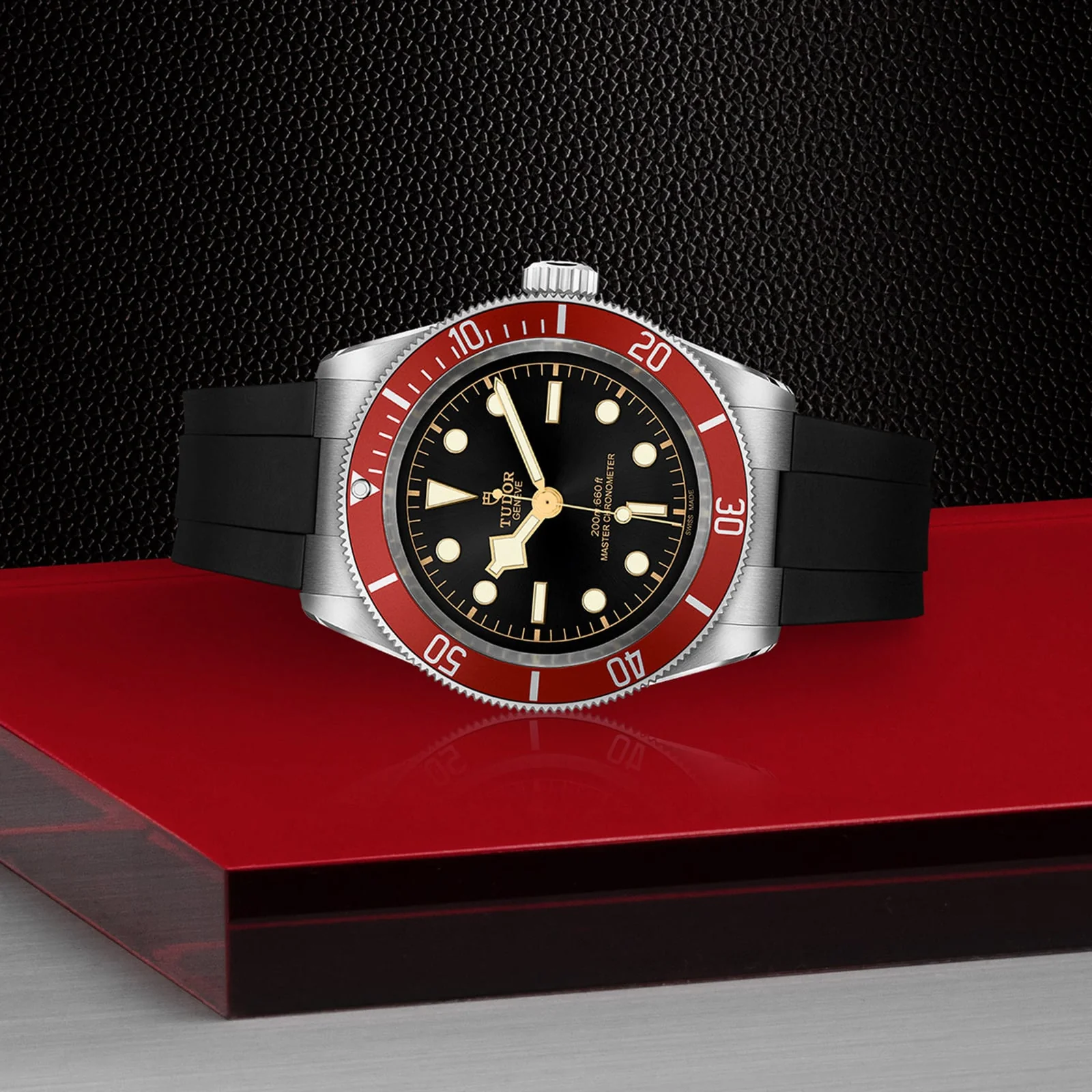 TUDOR introduces the new Black Bay with a burgundy bezel featuring both technical and aesthetic developments. This model features evolved design elements, a “T fit” clasp, and is Master Chronometer certified by METAS. Sixty years of TUDOR diving history distilled into one truly iconic watch. The Black Bay is powered by a mechanical movement manufactured by TUDOR. The original Black Bay first launched in 2012 with a burgundy bezel, now it returns in a third evolution foreshadowing the aesthetic and technical future