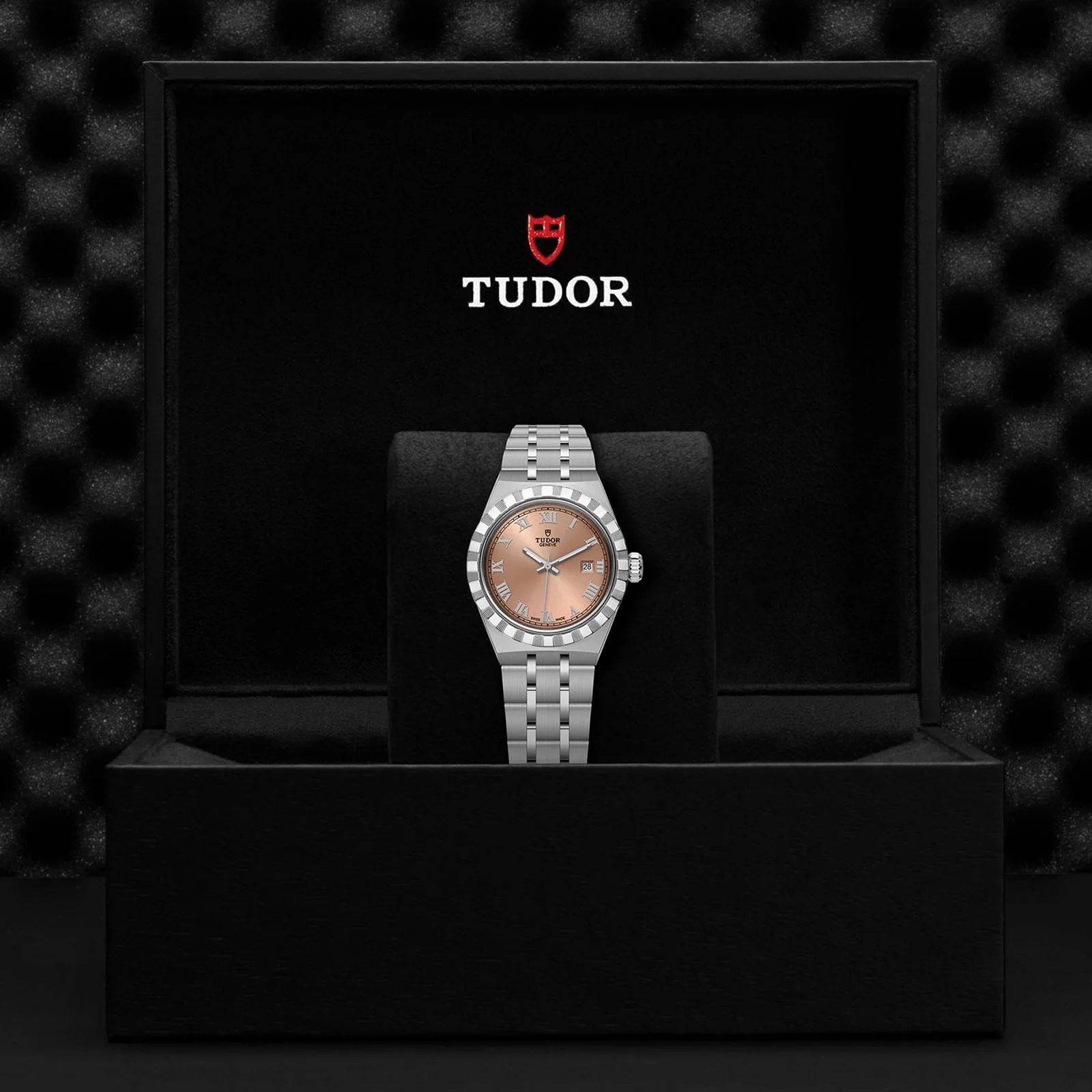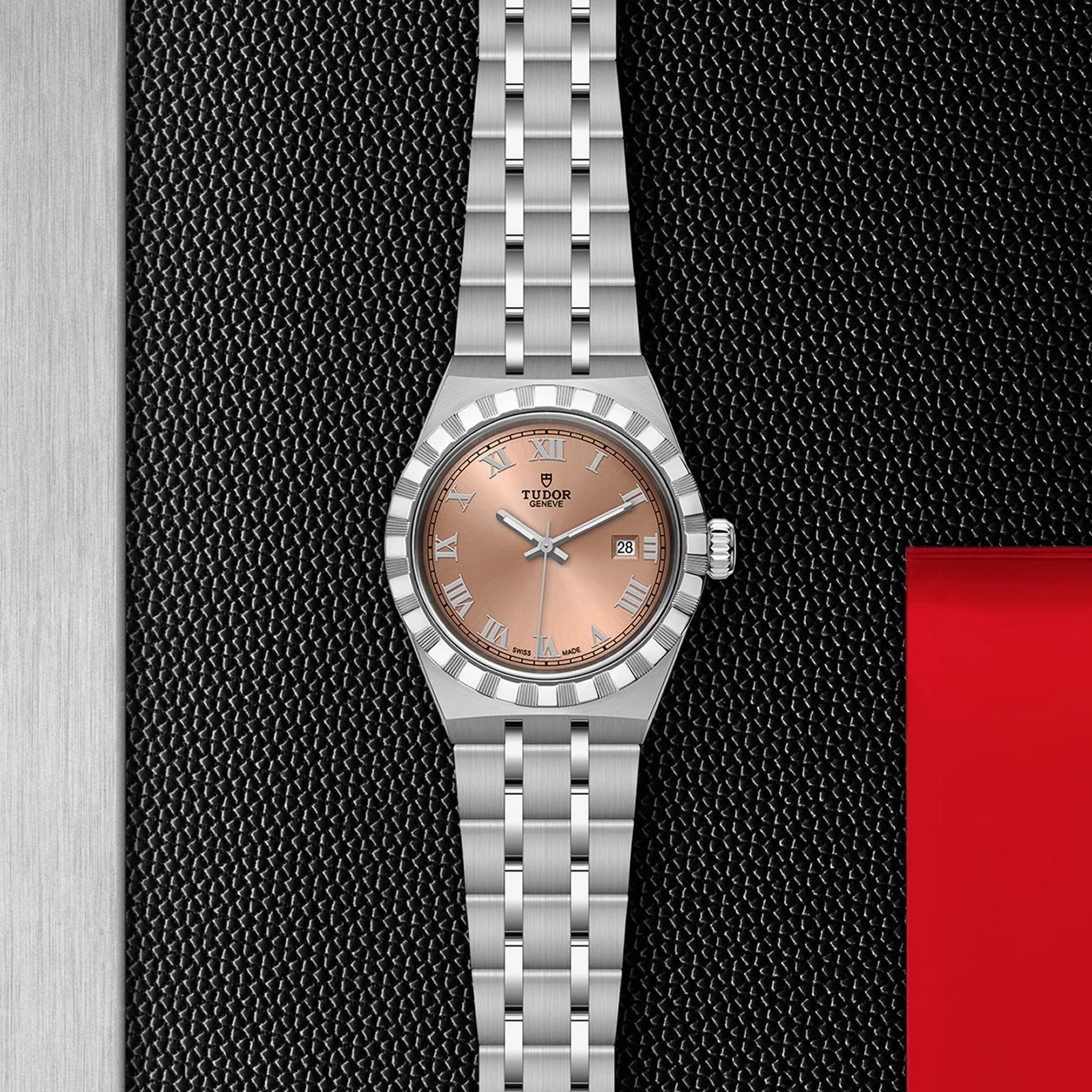 With its integrated metal bracelet, notched or diamond set bezel and automatic movement, the TUDOR Royal range is the epitome of versatile and affordable sport chic. TUDOR has expanded the dial range of the much loved Royal to include radial brushed salmon and chocolate brown dials that offer an unexpected and exquisite aesthetic. For a final touch of chic, TUDOR has added applied Roman numeral hour markers to its TUDOR Royal watches. All dials offer these applied numerals or a combination of applied numerals and eight diamond set hour markers.
