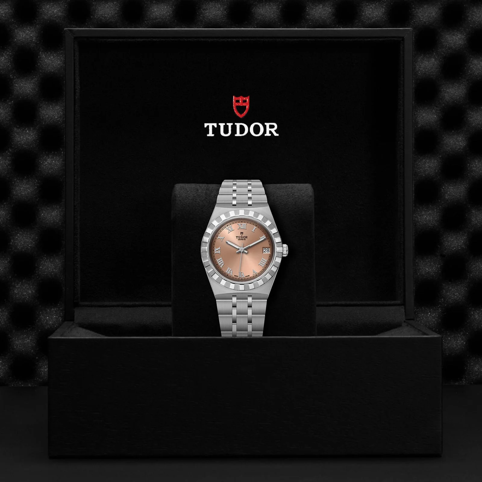 With its integrated metal bracelet, notched or diamond set bezel and automatic movement, the TUDOR Royal range is the epitome of versatile and affordable sport chic. TUDOR has expanded the dial range of the much loved Royal to include radial brushed salmon and chocolate brown dials that offer an unexpected and exquisite aesthetic. For a final touch of chic, TUDOR has added applied Roman numeral hour markers to its TUDOR Royal watches. All dials offer these applied numerals or a combination of applied numerals and eight diamond set hour markers.